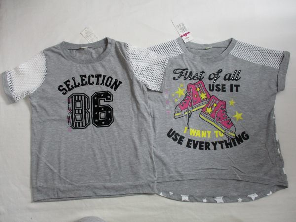 | SE690【TOPVALU】新品 デコ プリント 半袖Tシャツ 2枚 女児 淡黒 140 | ||