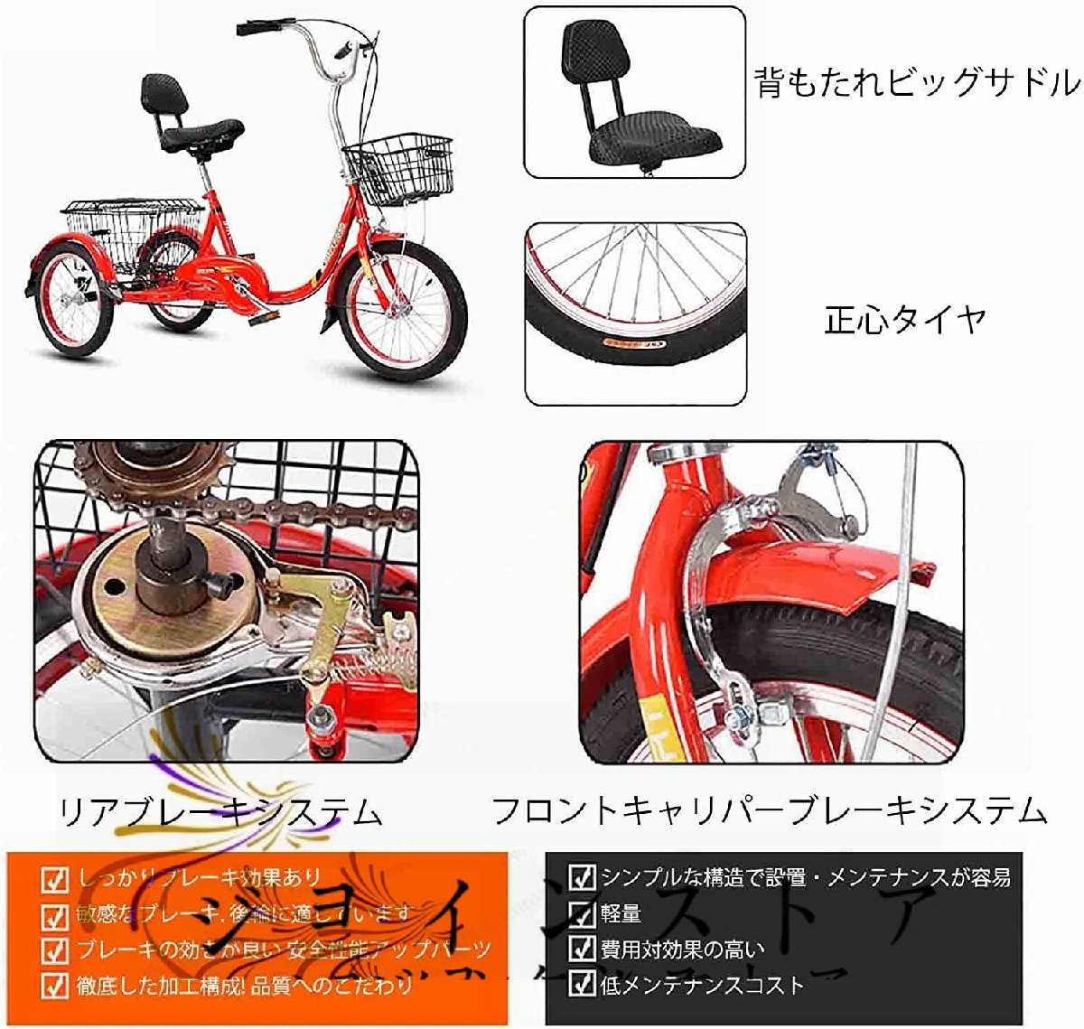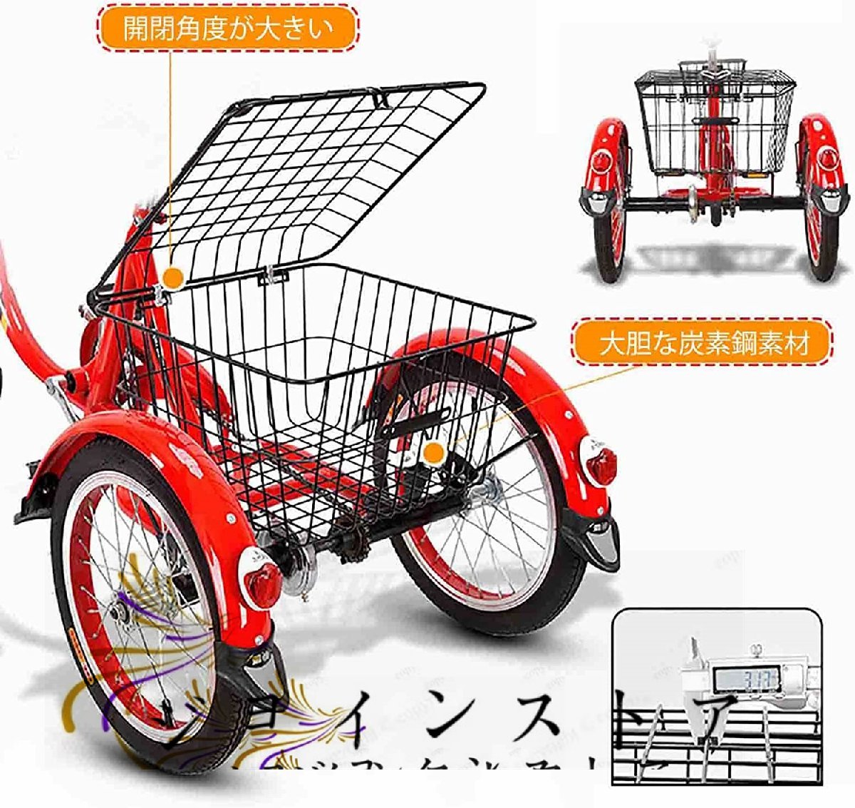 超人気★大人用 三輪車 お年寄 自転車 買い物かご付き大人 アシスト自転車 三輪車 1速 16インチ男性用と女性用 の人力車クルージング三輪車