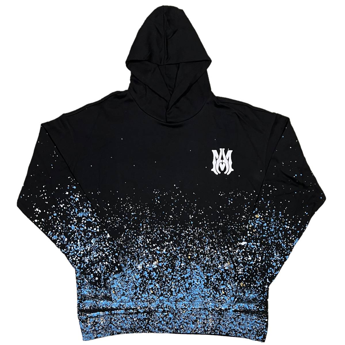 [並行輸入品] AMIRI アミリ BLUE PAINT BLEACH ALL OVER HOODIE ブルーペイント ブリーチ プルオーバーパーカー (S)