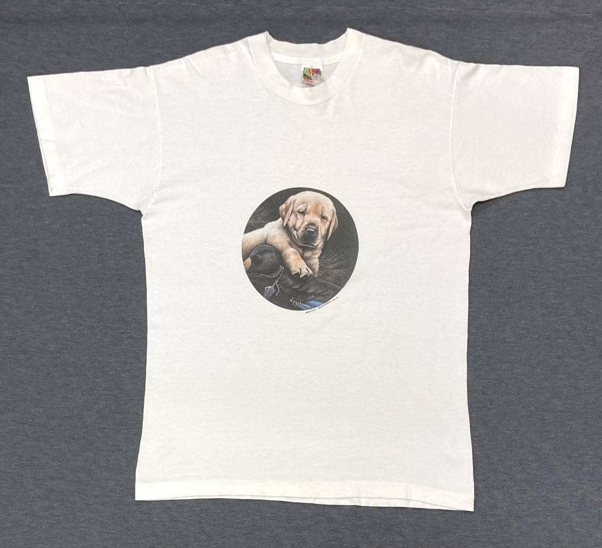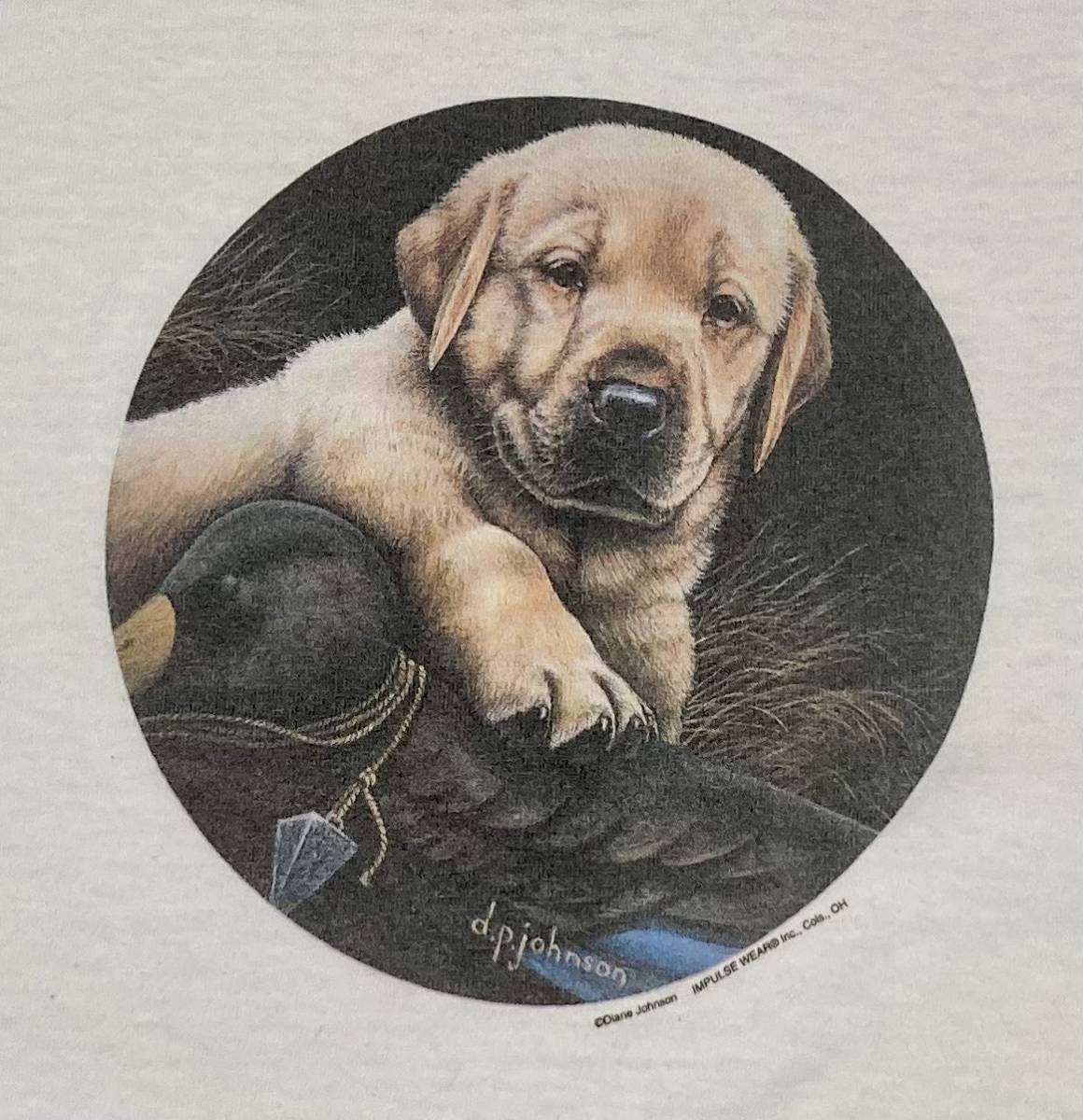 90s Diana Johnson アート Tシャツ 白 L 犬 ドッグ ビンテージ