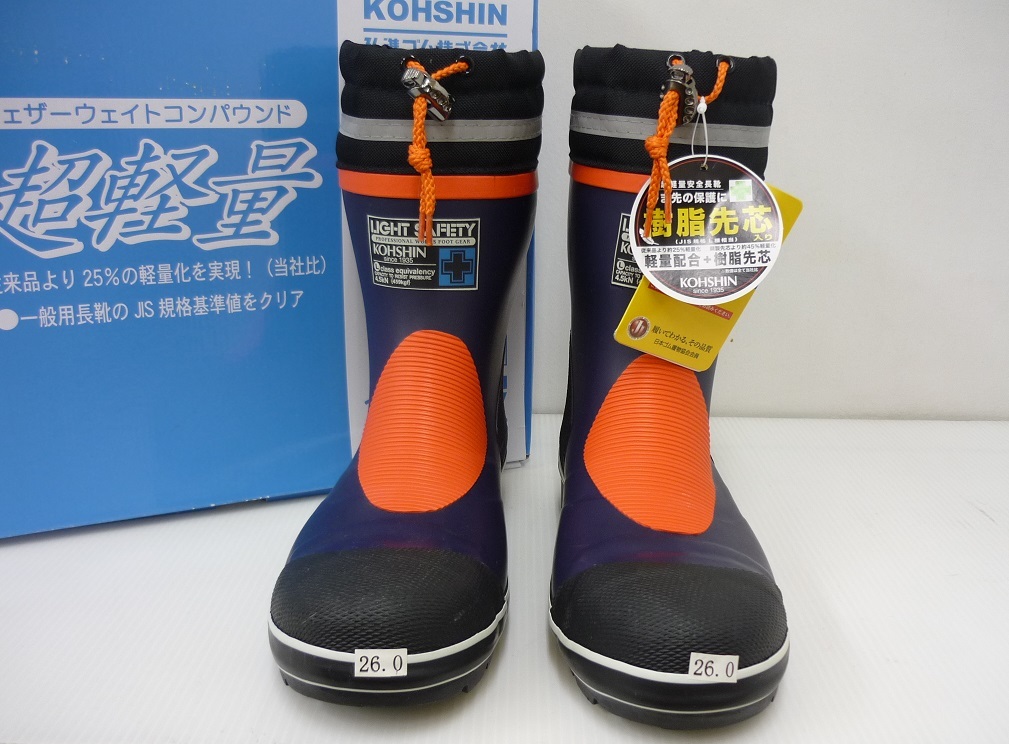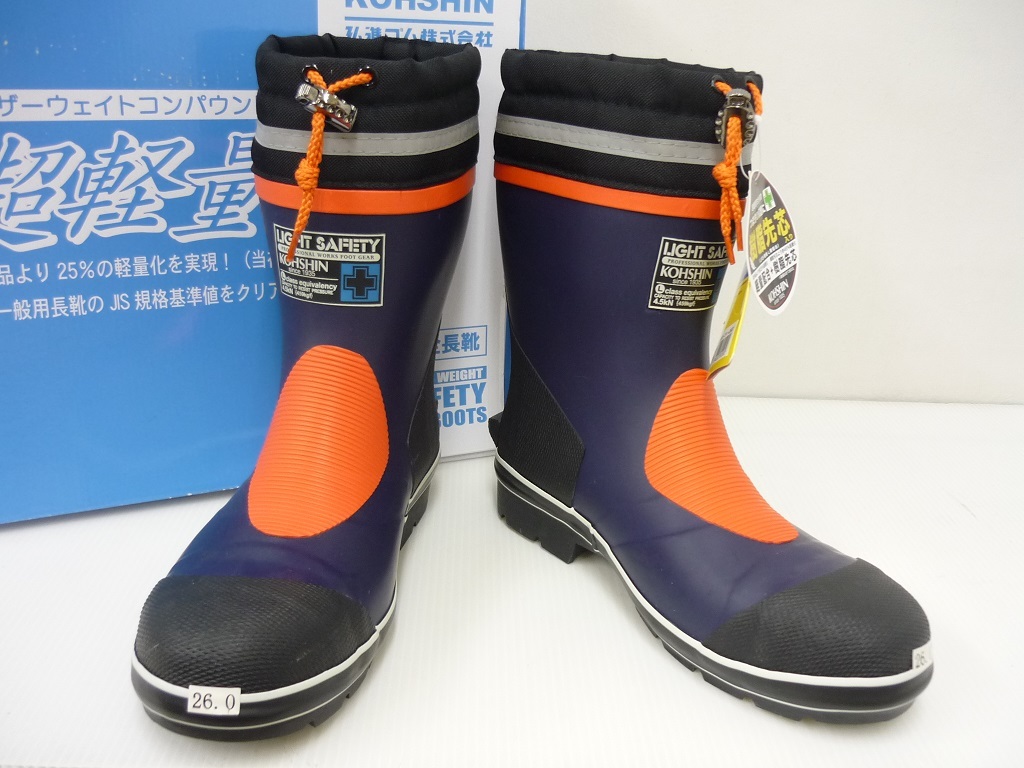 LSB321/格安!新品未使用品!超軽量!樹脂先芯入 作業長靴 ネイビー 26.0cm ショートタイプ セーフティー ラバーブーツ 吸汗裏布 反射材