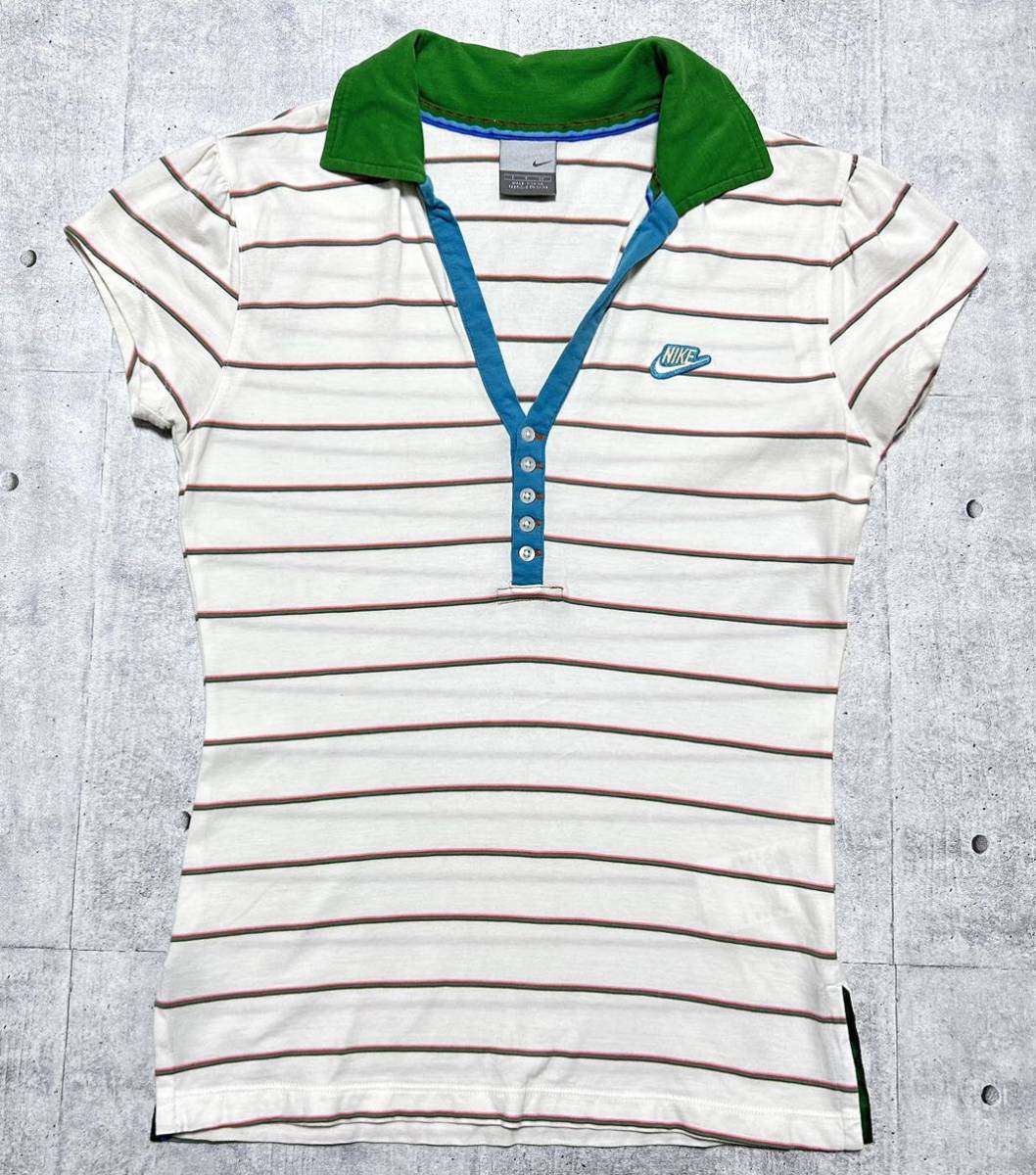ナイキ ポロシャツ フレンチスリーブ ボディフィット Vネック ヘンリーネック  NIKE ワッペン 刺繍 ワンポイント スポーツ 早2574 タウンユース ダンス ボーダー 裾スリット