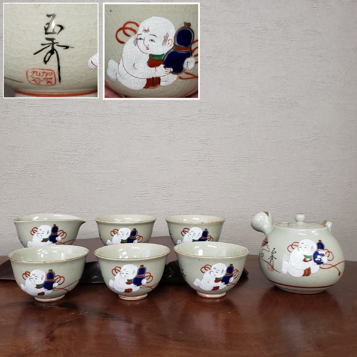 商品名 | 茶器セット 加賀九谷 九谷焼 銘有り 赤子 瓢箪 ひょうたん 手描き 繊細 鞠 独楽 珍しい 色絵 骨董 湯のみ 急須 | |||||||||||||||||||||||||