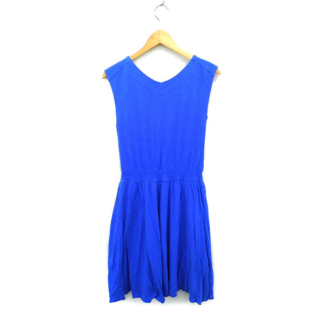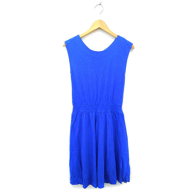 イエナ IENA フレア ワンピース ひざ丈 ひざ下 シャーリング コットン混 ノースリーブ 38 青 ブルー /NT24 レディース