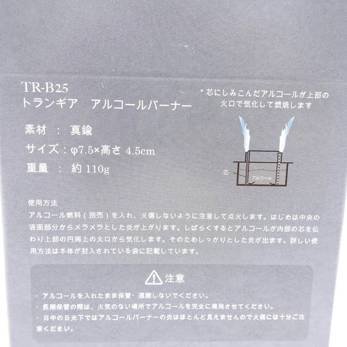※商品は画像にあるものがすべてとなります。 【仕様】 ブランド:トランギア タイプ:アルコールバーナー スピリットバーナー [プリヒーター(TR-FV21)付] 型番:TR-B25 |