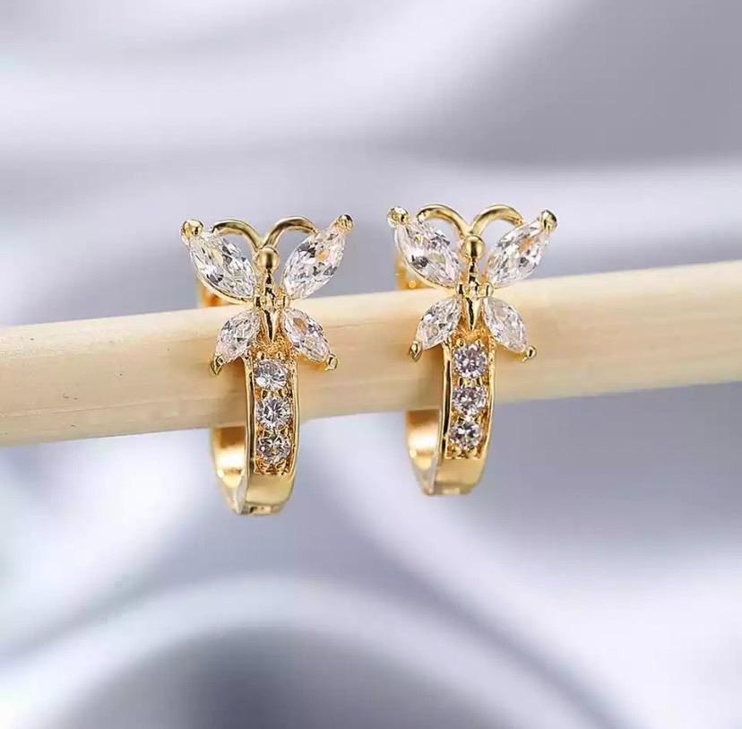 551★新品未使用★レディース ゴールド フープ 蝶 ピアス czダイヤモンド ジュエリー ジルコニア アクセサリー 結婚式 ストーン おしゃれ
