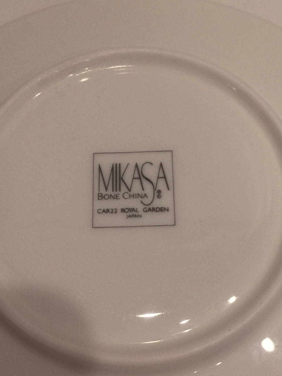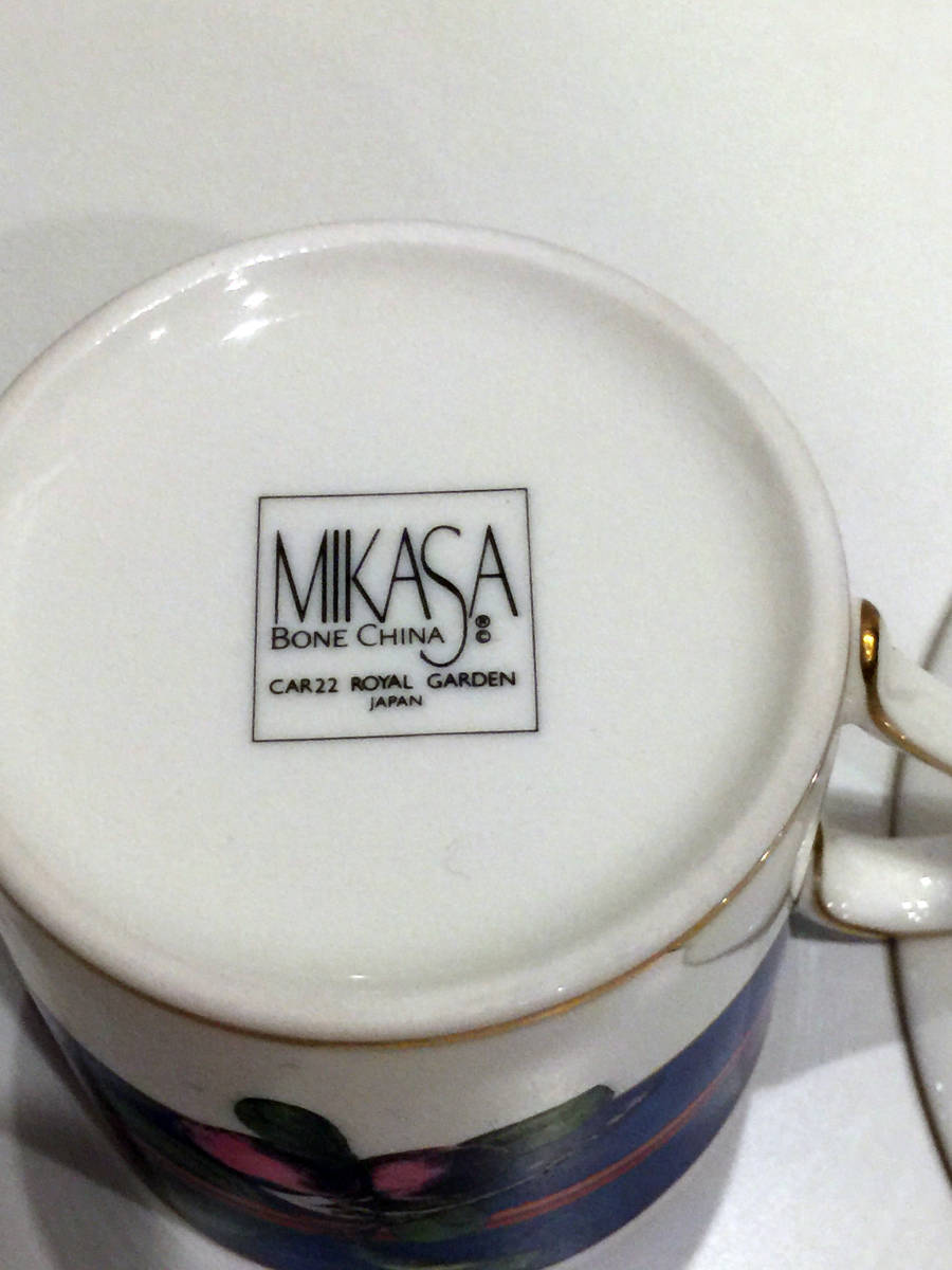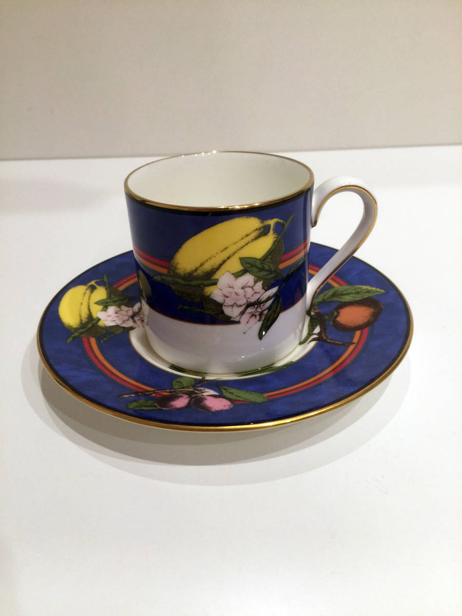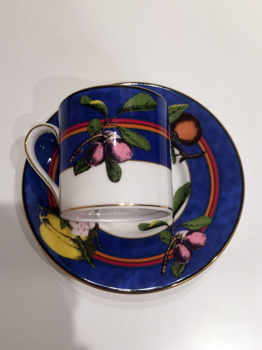 MIYAO by MIKASA のカップ&ソーサー 青を基調にした 花&フルーツ柄 金彩です
