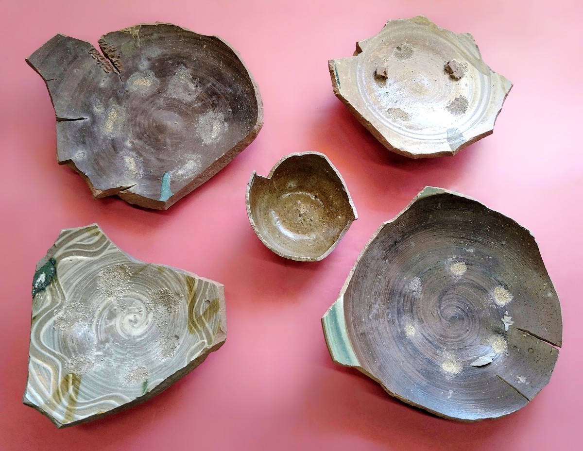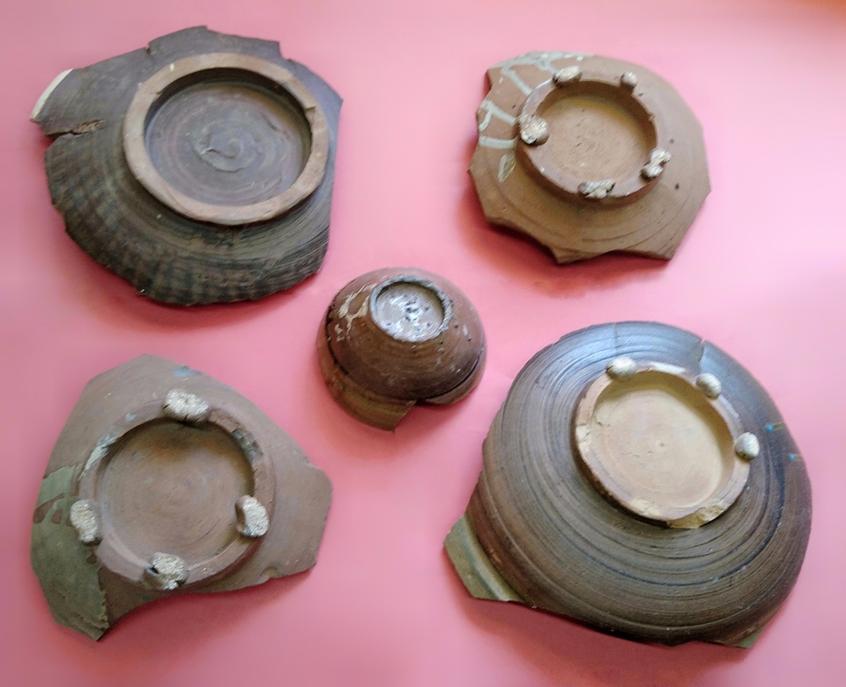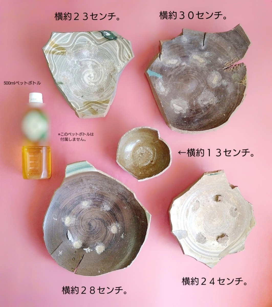 写真でもお分かりだと思いますけど、発掘品のため割れたり欠けたりしていて、また長年の土の中での劣化や当時の技術的な面での歪み、小さな石や砂などのくっつきなどがあります。