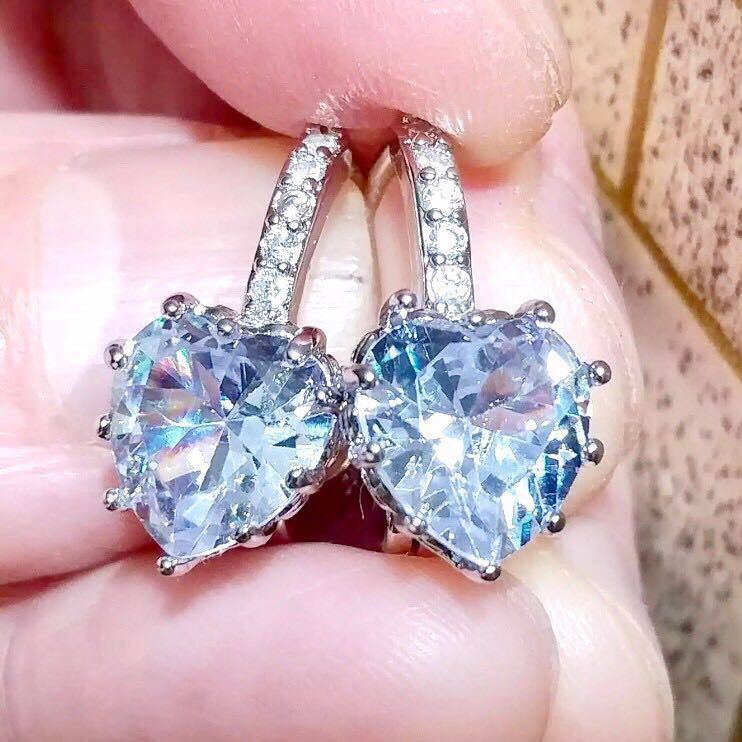 大粒のハートのAAACZダイヤモンドに、小さなCZダイヤをあしらった、華やかなピアスです。