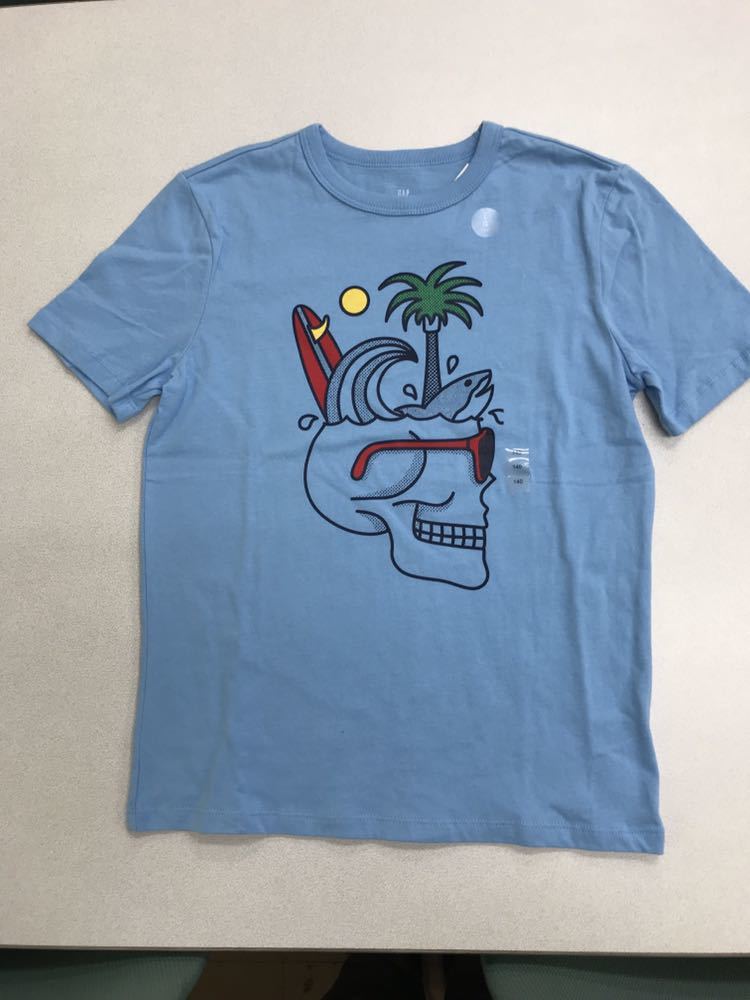 ■GAP■新品■150■ギャップ■水色■スカル■サーフボード■USAらしいデザイン■ドクロ■2-1