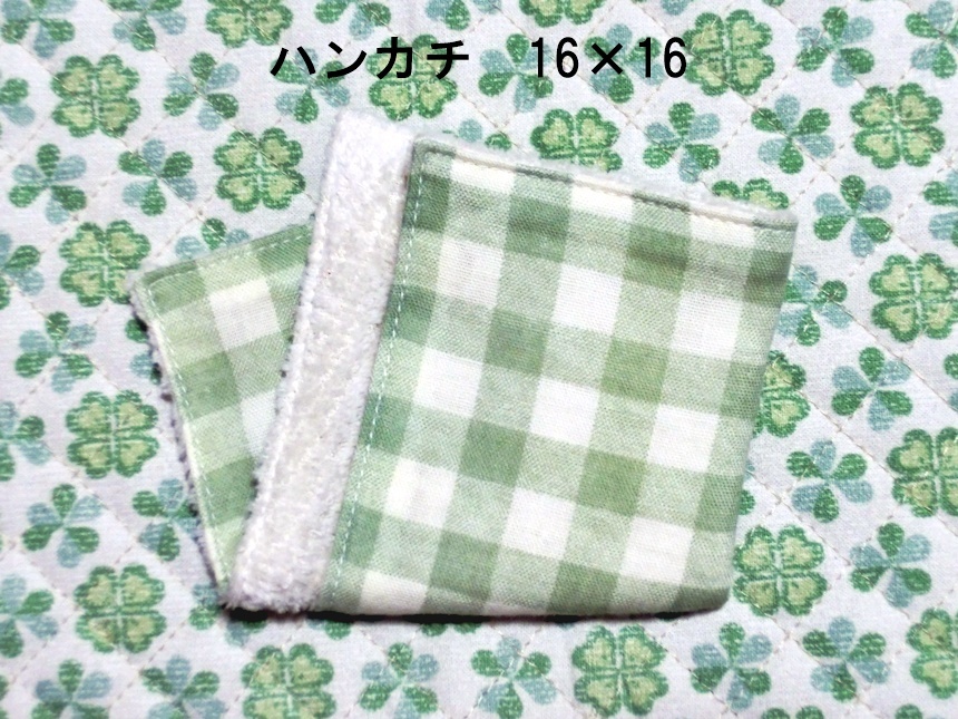 ポケットに収まりやすい、ハンドメイド・正方形16×16センチのダブルガーゼ&タオルのハンカチです。 薄すぎず、厚すぎず、吸水性と速乾性にこだわりました。 型崩れ防止のために、ぐるっと一周ステッチをしてあります。 タオル生地は、肌触りが柔らかく気持ちのいいループをカットしてある国産シャーリングタオル生地を使用しております。 小さなお子様、入園入学にいかがですか? 職業用ミシンで作製しました。 手持ちの生地すべては出品できておりません。 出品中の生地でご希望の生地・ご希望のサイズがありましたら質問よりご連絡ください。 生地の在庫がありましたら、対応させていただきます。(タオル生地の色は画像と同じものになります) 商品名にご依頼者様のオーダーと記載し出品させていただきます。 サイズ:16×16センチ 素 材:ダブルガーゼ&国産シャーリングタオル生地 | ||