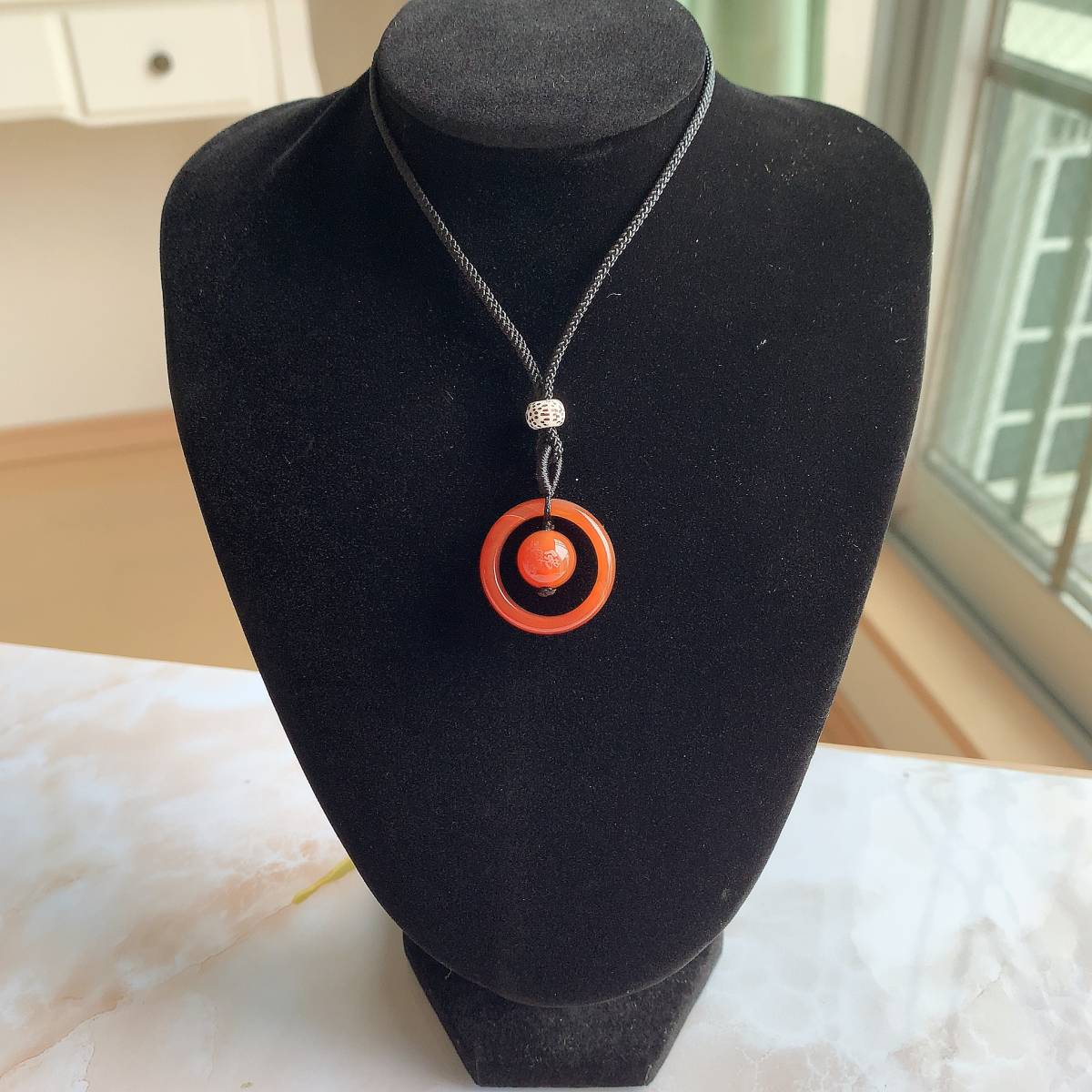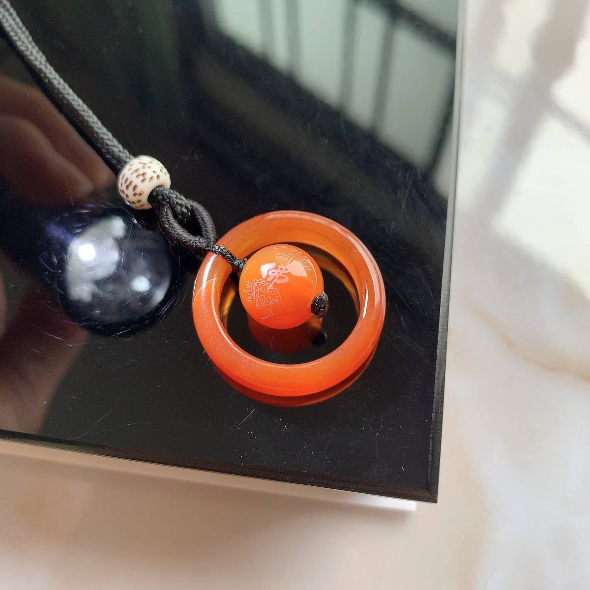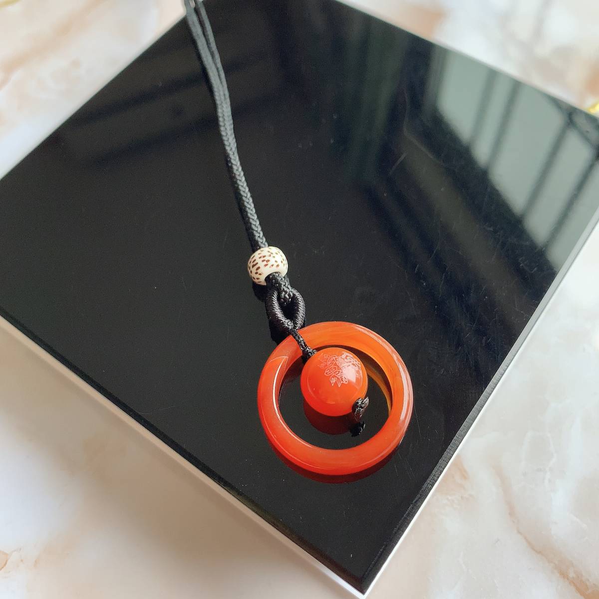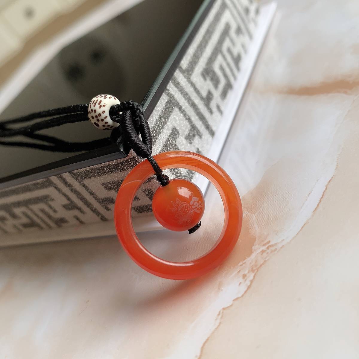 ☆赤瑪瑙☆パワーストーン☆ネックレスペンダント☆粒に佛字と蓮花彫刻☆ラッピング袋付☆プレゼントにも PR62104
