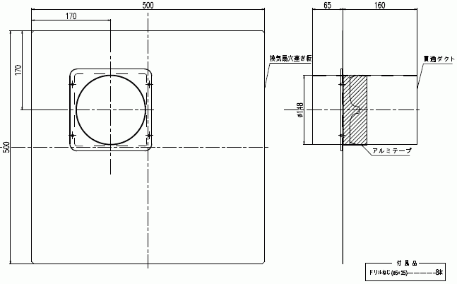 換気扇の開口をふさぎダクト配管が出来ます。