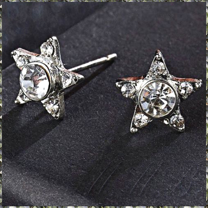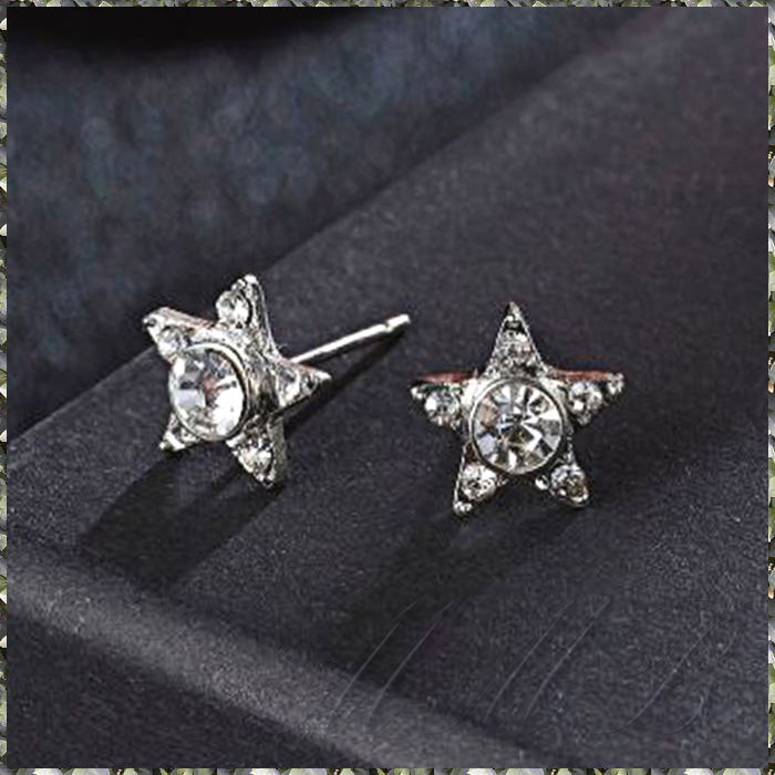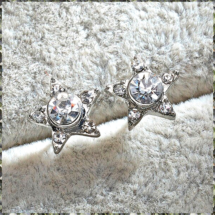 Silver Plated Crystal CZ Star ビューティフル 6 クリスタルCZ ミニ スター 9mm 星型 スタッド ピアス です。