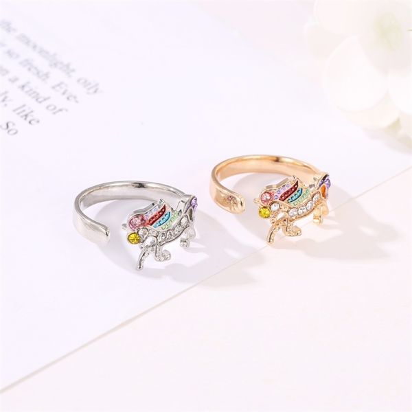 オープンリング 指輪 ゴールド ユニコーン ラインストーン カラフル レディース 韓国 調整可能 フリーサイズ 可愛い 動物 #C1168-2