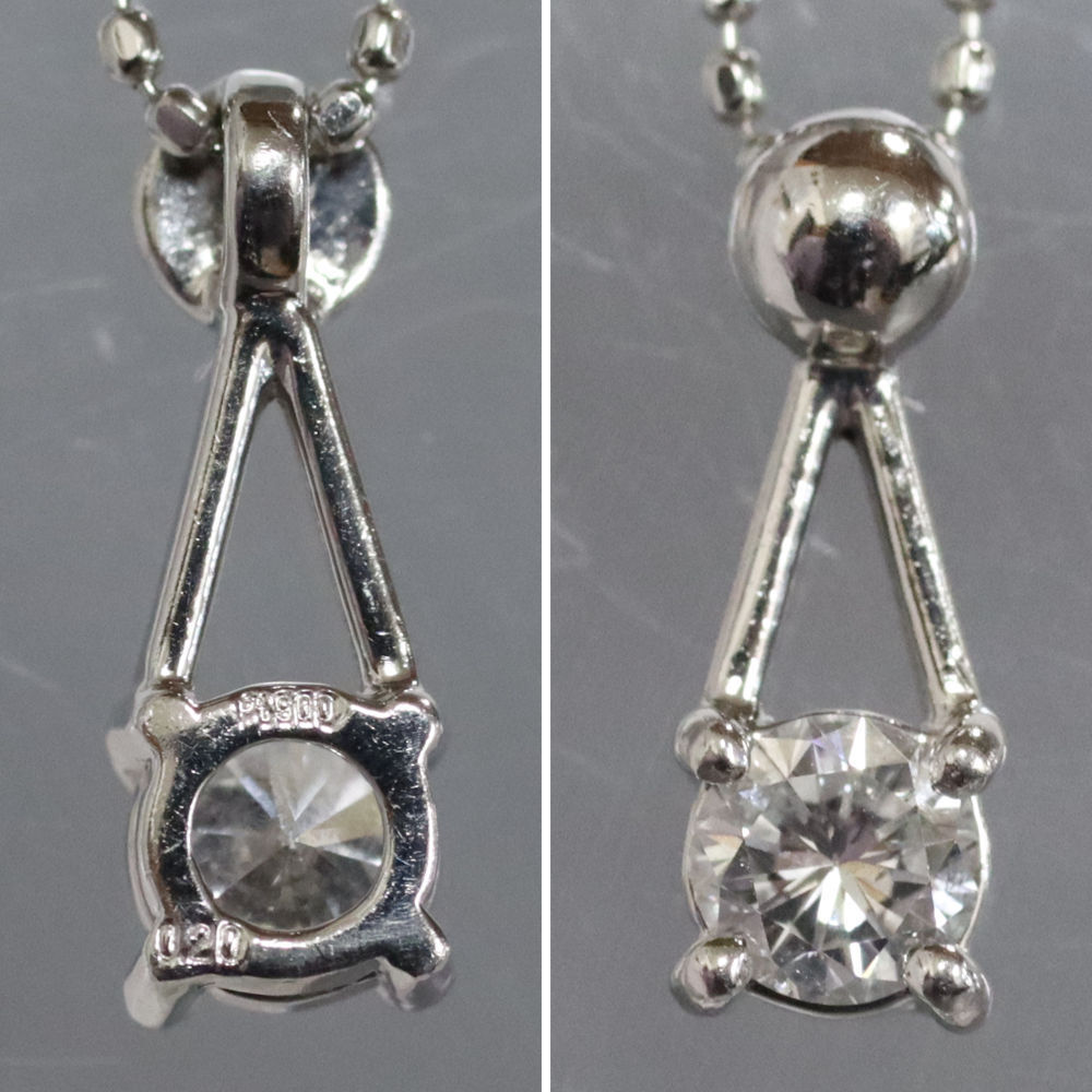 Pt900/850ダイヤモンドペンダントの中古品です。 0.2カラットのダイヤモンドが1つセットされております。 ダイヤモンドはインクルージョンがあり、少々黄色味がかっております。 トップはチェーンから抜けない構造になっております。 プラチナに傷がありますが、目立つ大きな傷はありません。