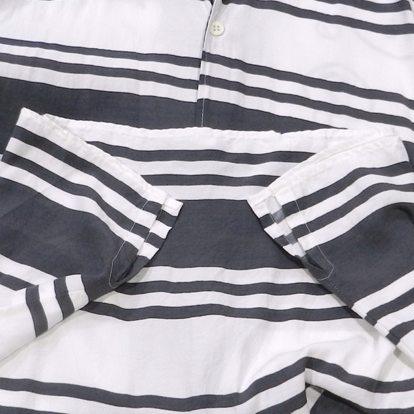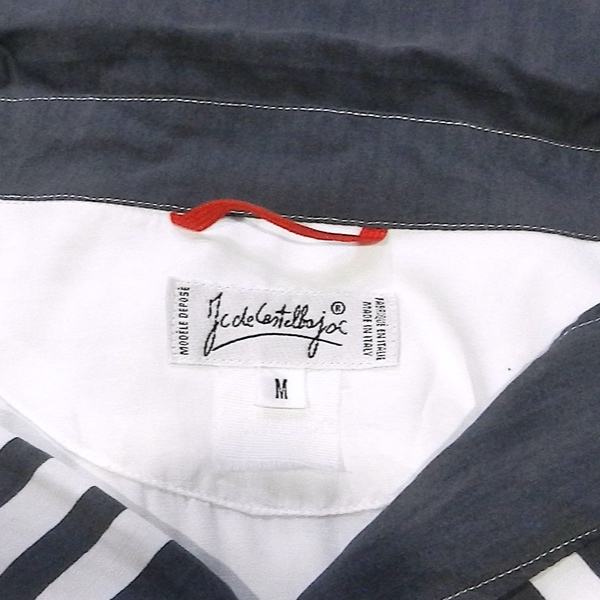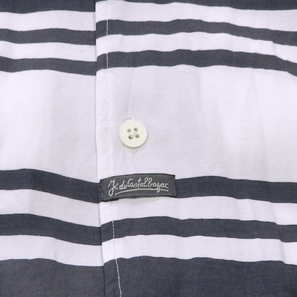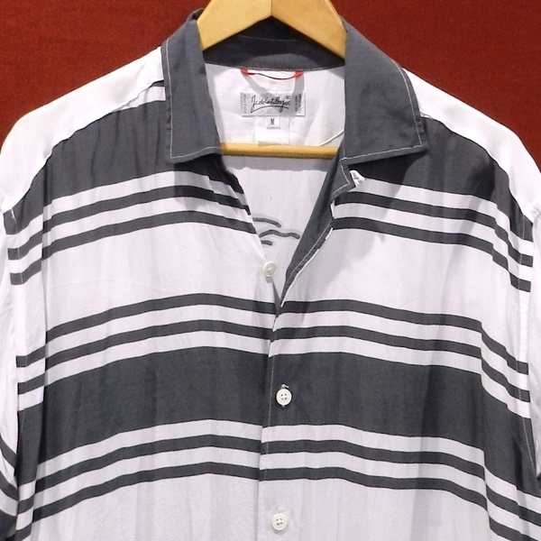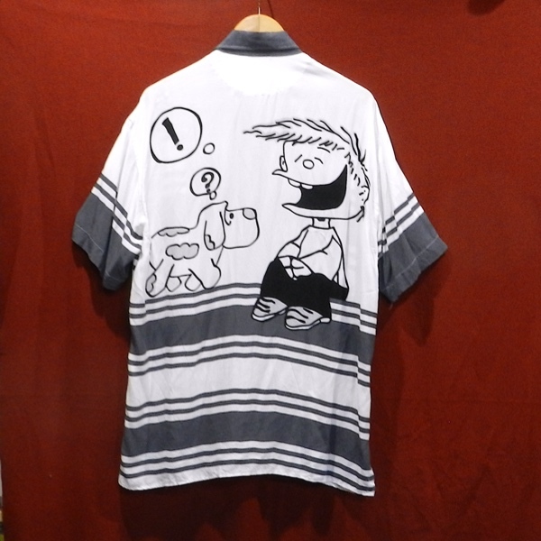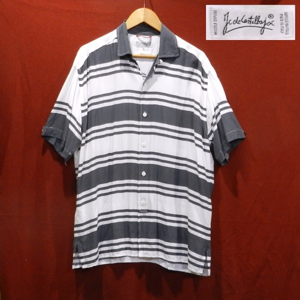 カステルバジャック 90's イタリア製 オールド ボーダー 半袖 アロハシャツ 開襟シャツ 半袖シャツ イラスト 白 グレー 大きめ M