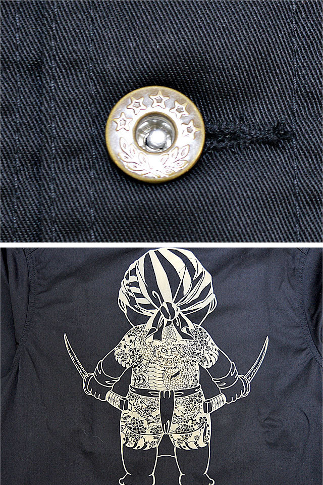CHIGIRIさんから「後身刀カバーオールジャケット(CHS48-881)」のご紹介です。 バックにちぎり剣士の勇ましい背中をプリントしたカバーオールが登場しました! ボディーにはしっかりとした硬めの生地を採用。 | |||||||||||||||||||||||||