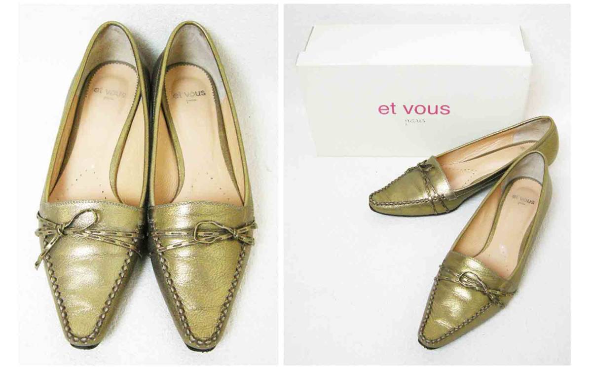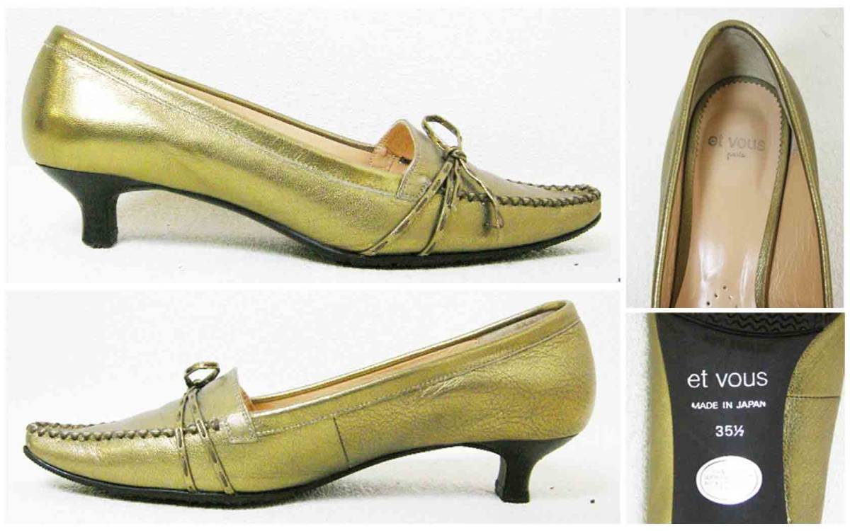 ■et vous【エヴー】ゴールド色リボン付パンプス・35.5箱付■