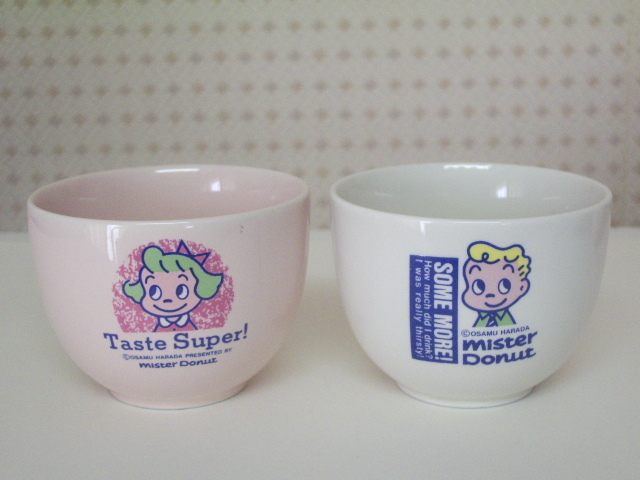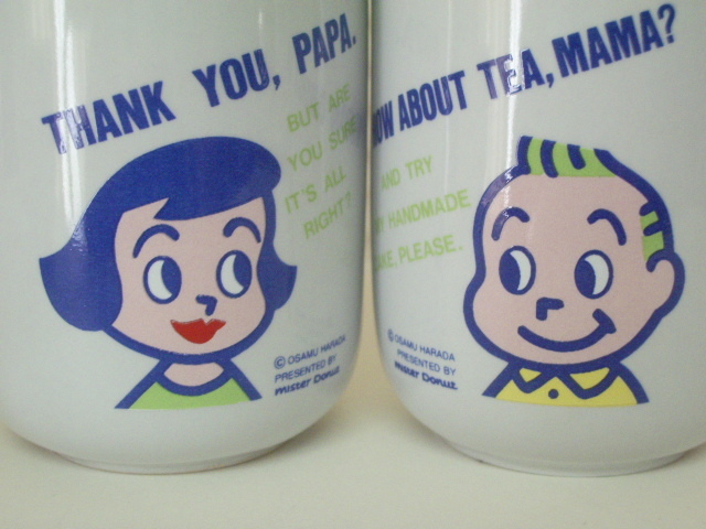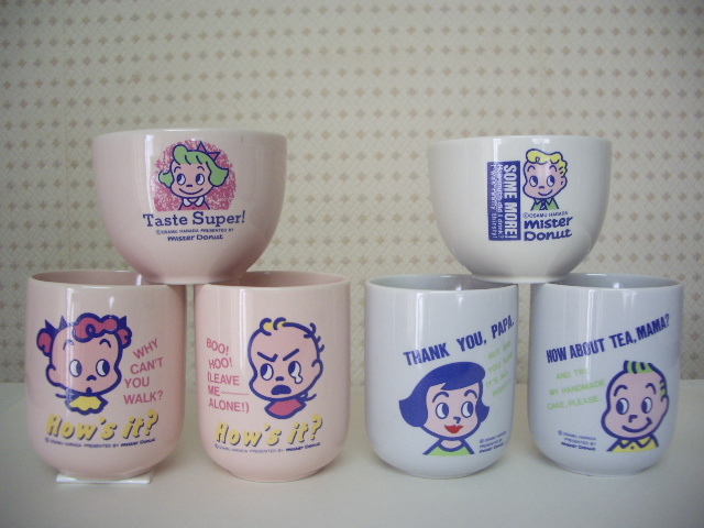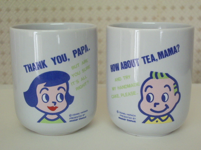 ミスタードーナツ 非売品◆ミスド 原田治◆父 母 娘 息子 ベイビー 湯のみ 湯呑み 湯飲み 6種set◆陶器製 原田 オサム