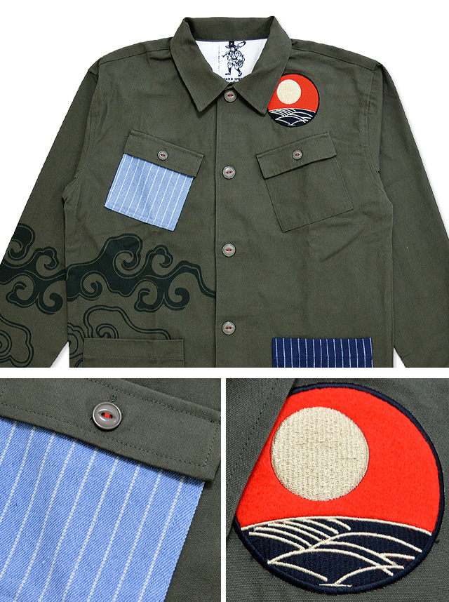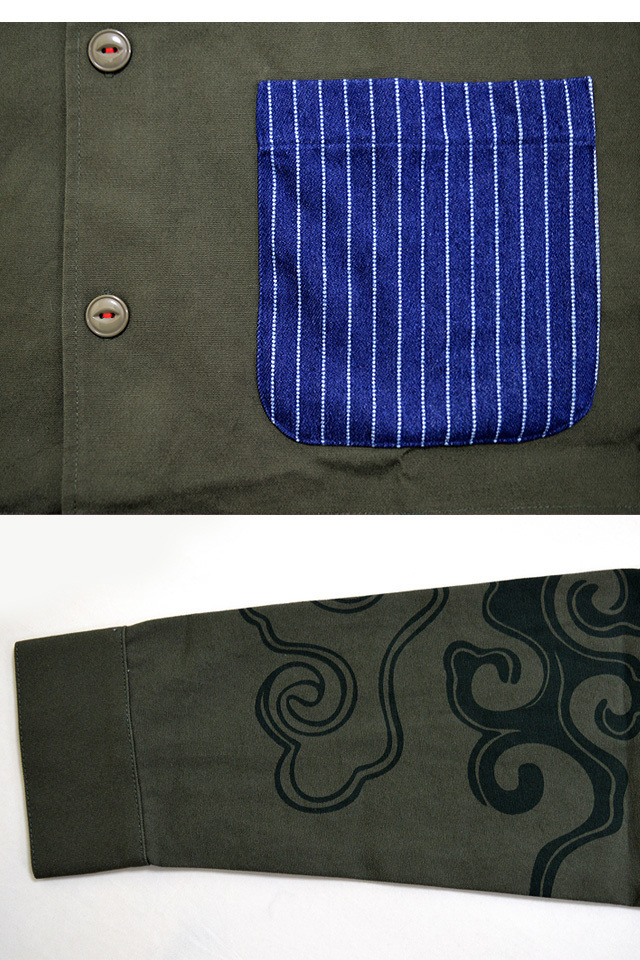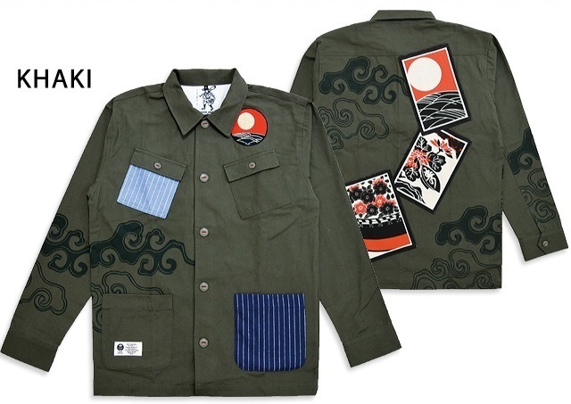 セール 特価 月下で花見酒カバーオール◆喜人 カーキSサイズ 和柄 和風 ジャケット ブルゾン 花札 ワッペン 刺繍 送料無料 新品未使用