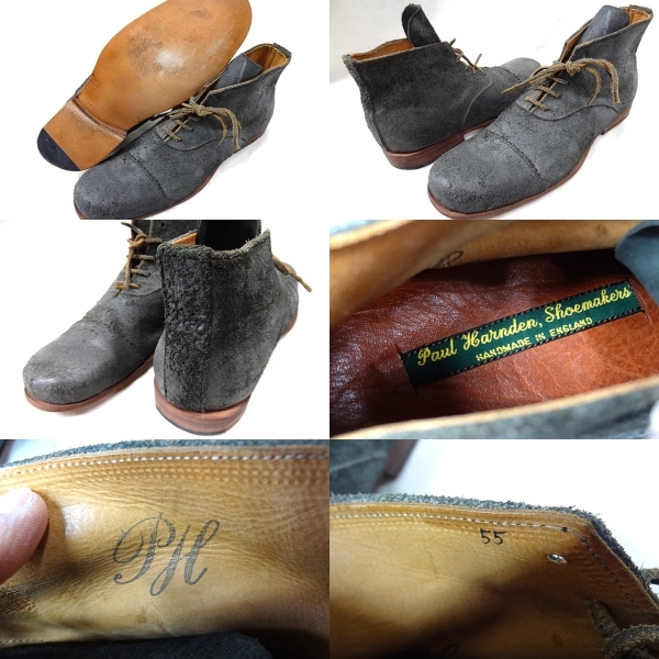 PAUL HARNDEN ポールハーデン 英国 イギリス製 黒 ラフアウト レザー シューズ ブーツ サイズ 55 ミドル丈 レア PH イングランド スエード
