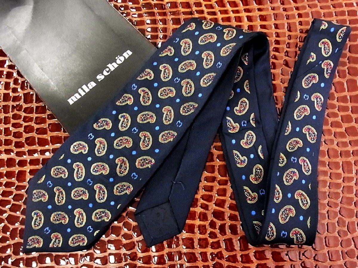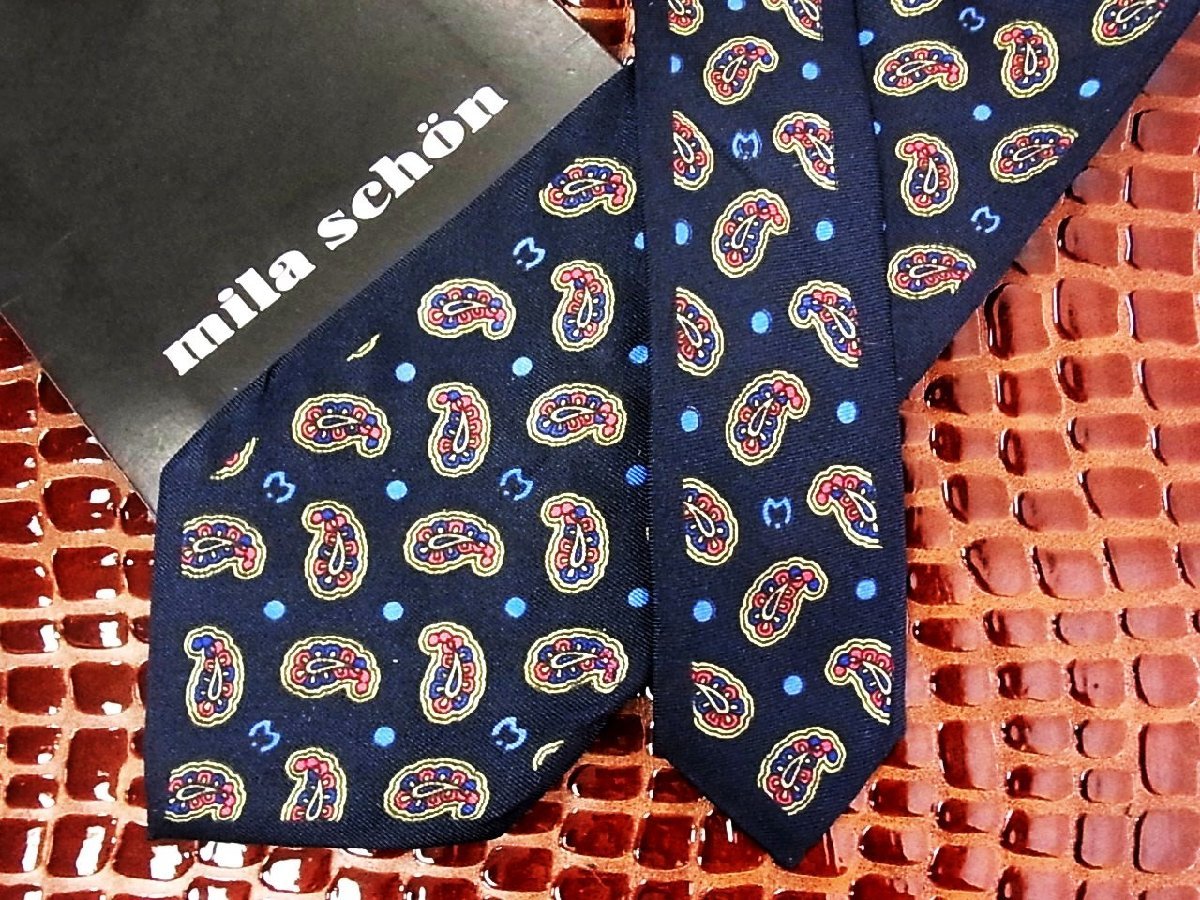 ♪今週の特売980円~♪1144♪良品【mila schon】ミラショーン【ペイズリー ドット mロゴ 柄】ネクタイ♪