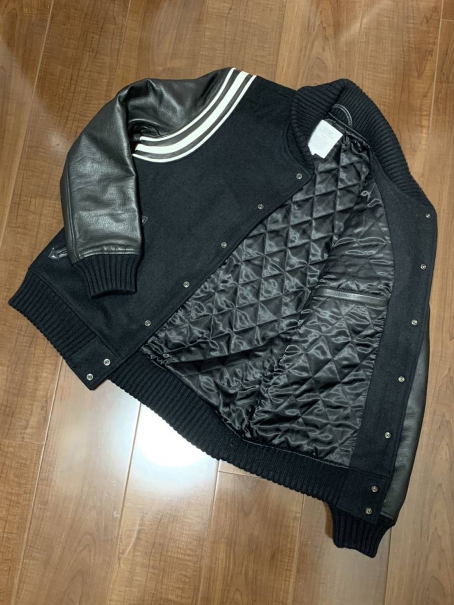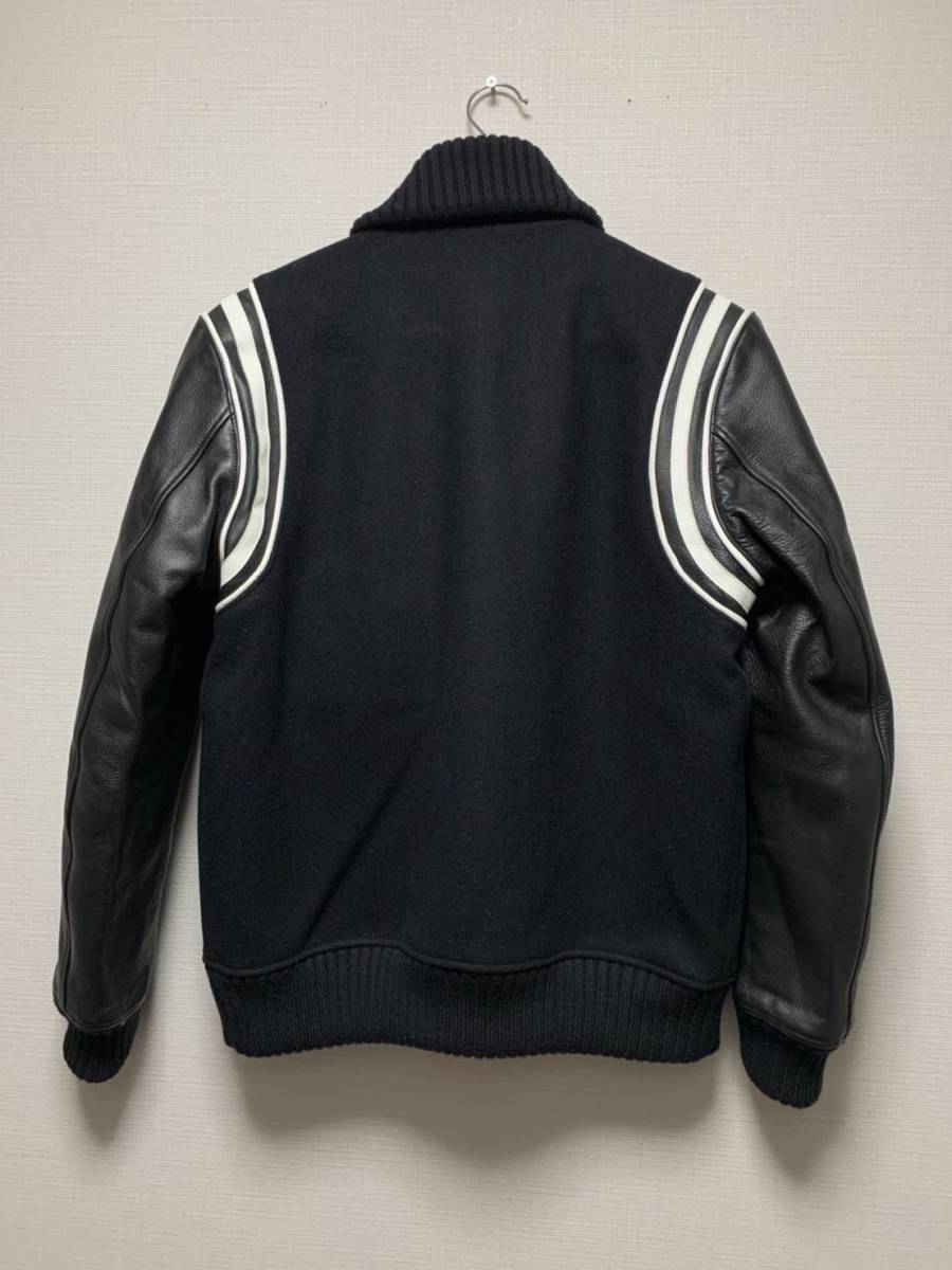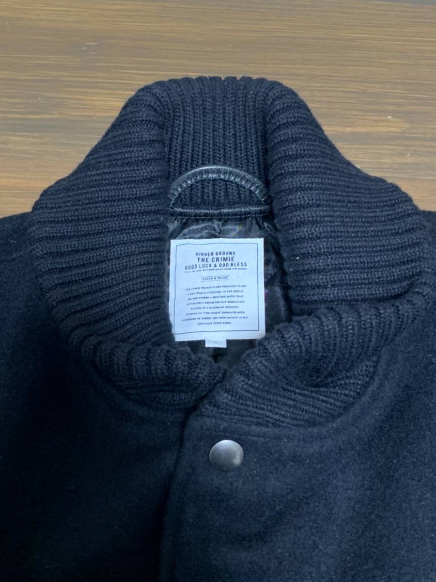 美品☆[CRIMIE] 16AW 定価72,000 MIKE 1 STADIUM 袖レザースタジャン バーシティジャケット M ブラック 牛革 クライミー