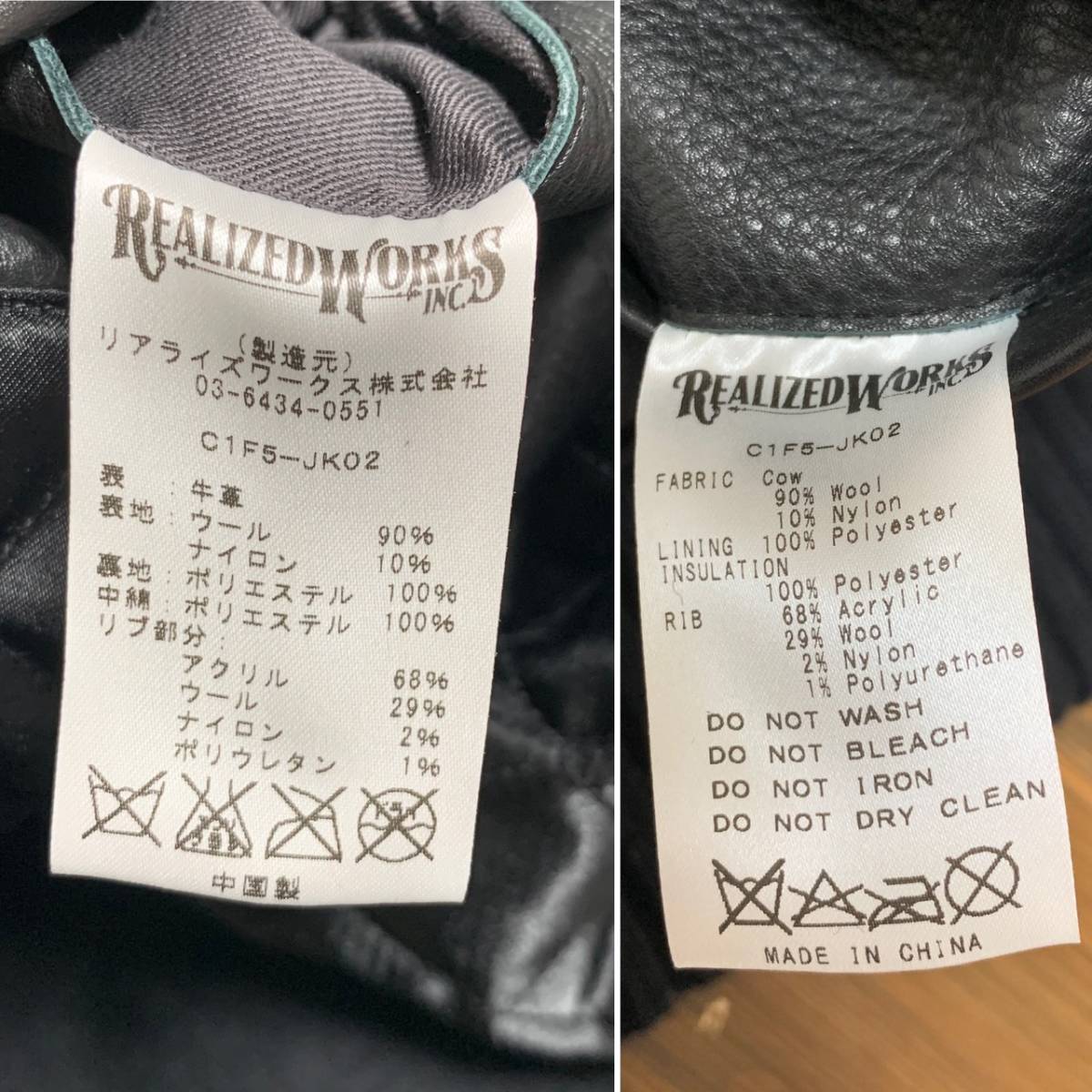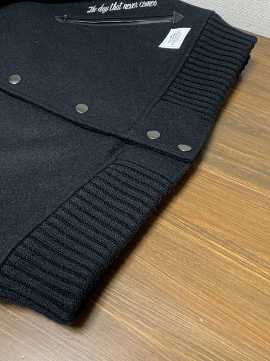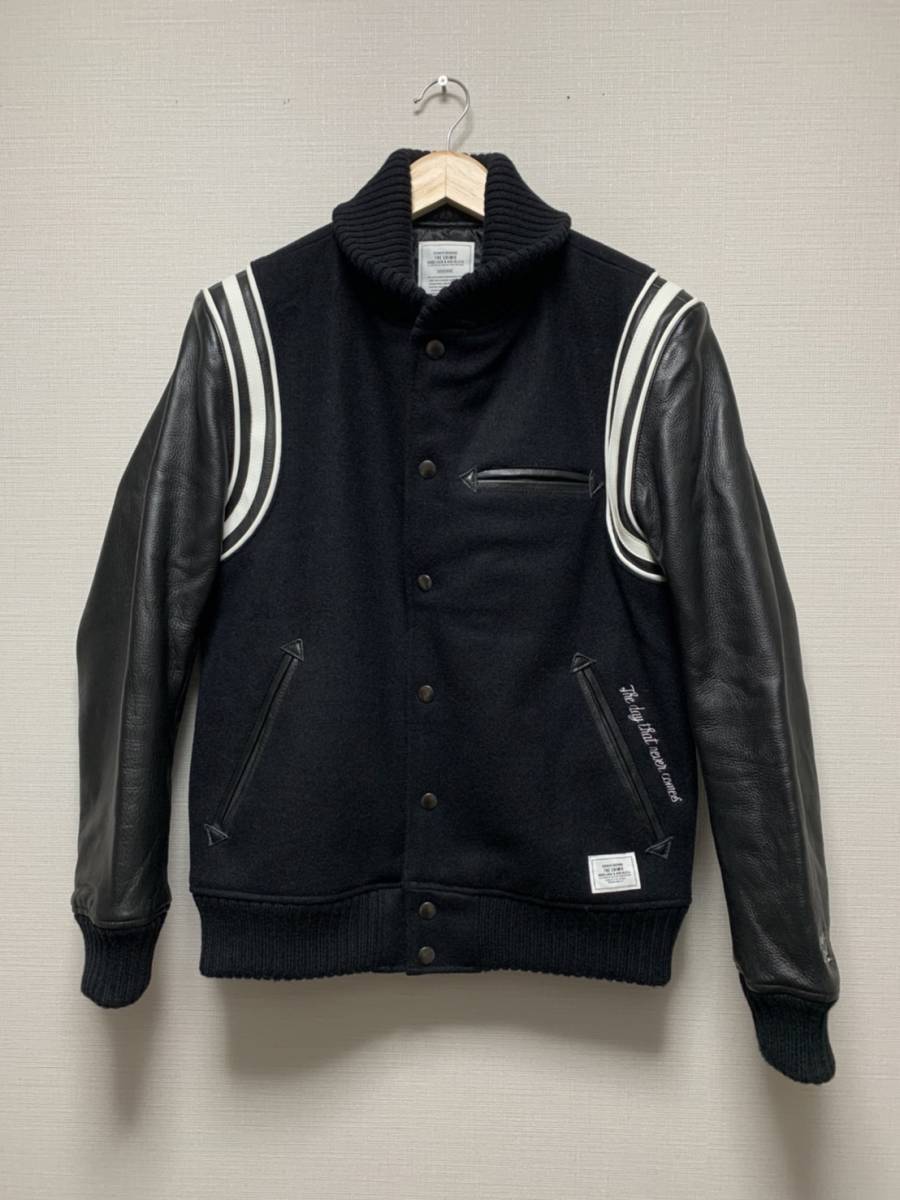 美品☆[CRIMIE] 16AW 定価72,000 MIKE 1 STADIUM 袖レザースタジャン バーシティジャケット M ブラック 牛革 クライミー