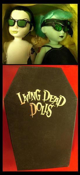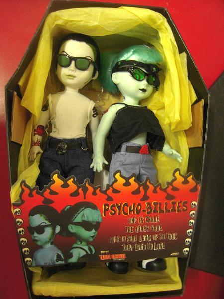 Living Dead Psycho-Billies!:Opened. Date of death: 1/19/1998 Dolls are 10 inches tall in a coffin. The Psycho Billy and Jilly 2-pack was exclusively available at Tower Records. 98年タワーレコード限定でリリースされた、希少なリヴィングデッドドールズ!! サイコビリー版、Billy & Jillyです。 開封されディスプレイされていた品の様で、若干汚れ・年月劣化というか使用されていた雰囲気がありますが、特に目立つダメージはございません。付属品はすべてそろっています。 ディスプレイしておくのには、特に問題ないと思いますが、ノークレーム・ノーリターンでお願いいたします。 エースカフェロンドン、ラッキー13、スナップオン、グレッチ、マーシャル等ライセンスTシャツ、ラットフィンク関連品、バンドTシャツ等取り扱っております。 CWLPpC | |||||||