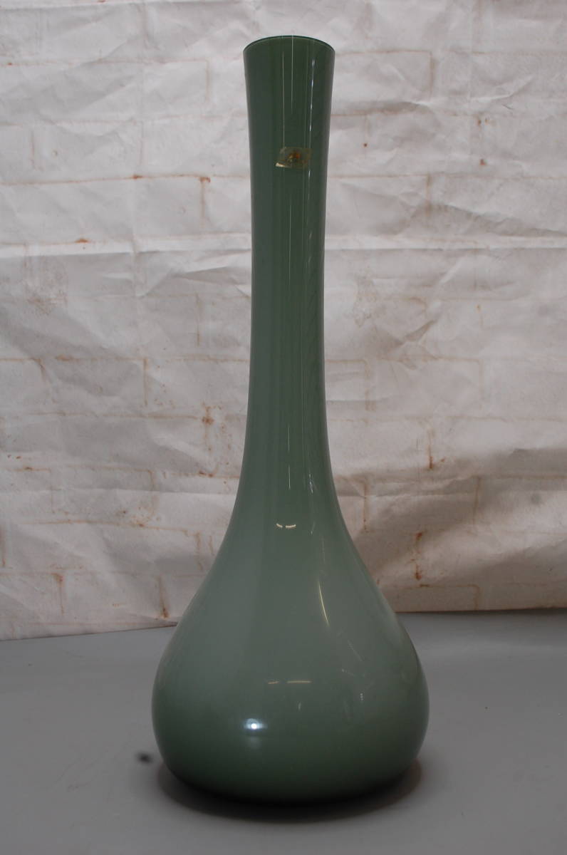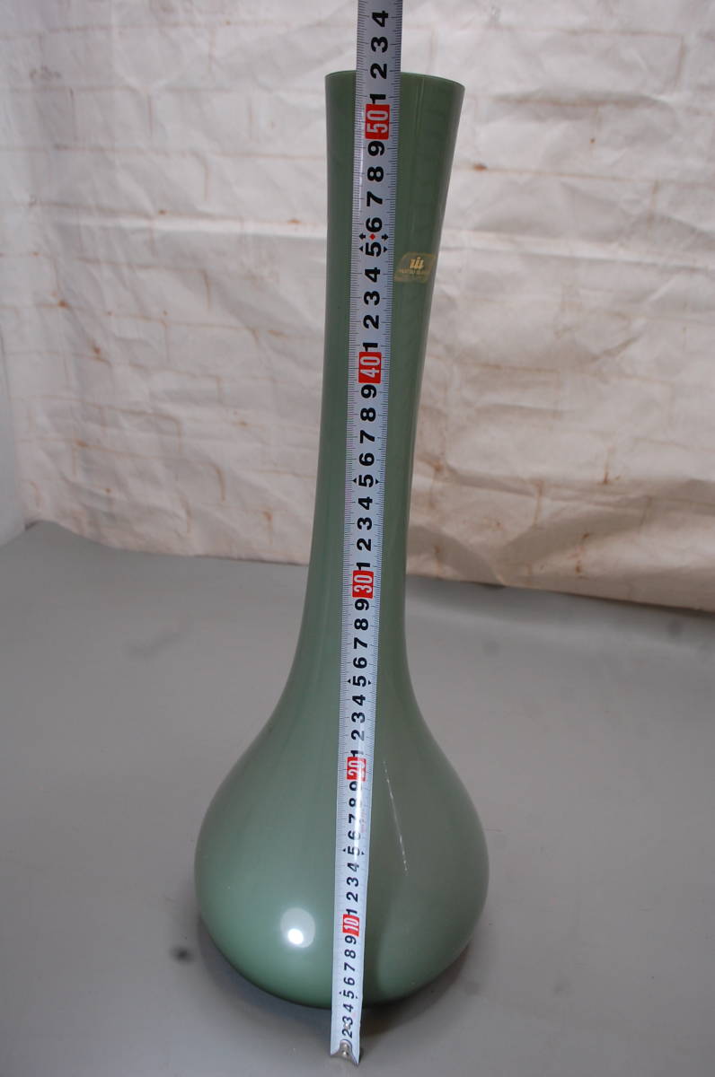 て471.IWATSU GLASS◇ガラス花器◇花瓶◇フラワーベース◇和モダン◇グリーン◇H52.5cm