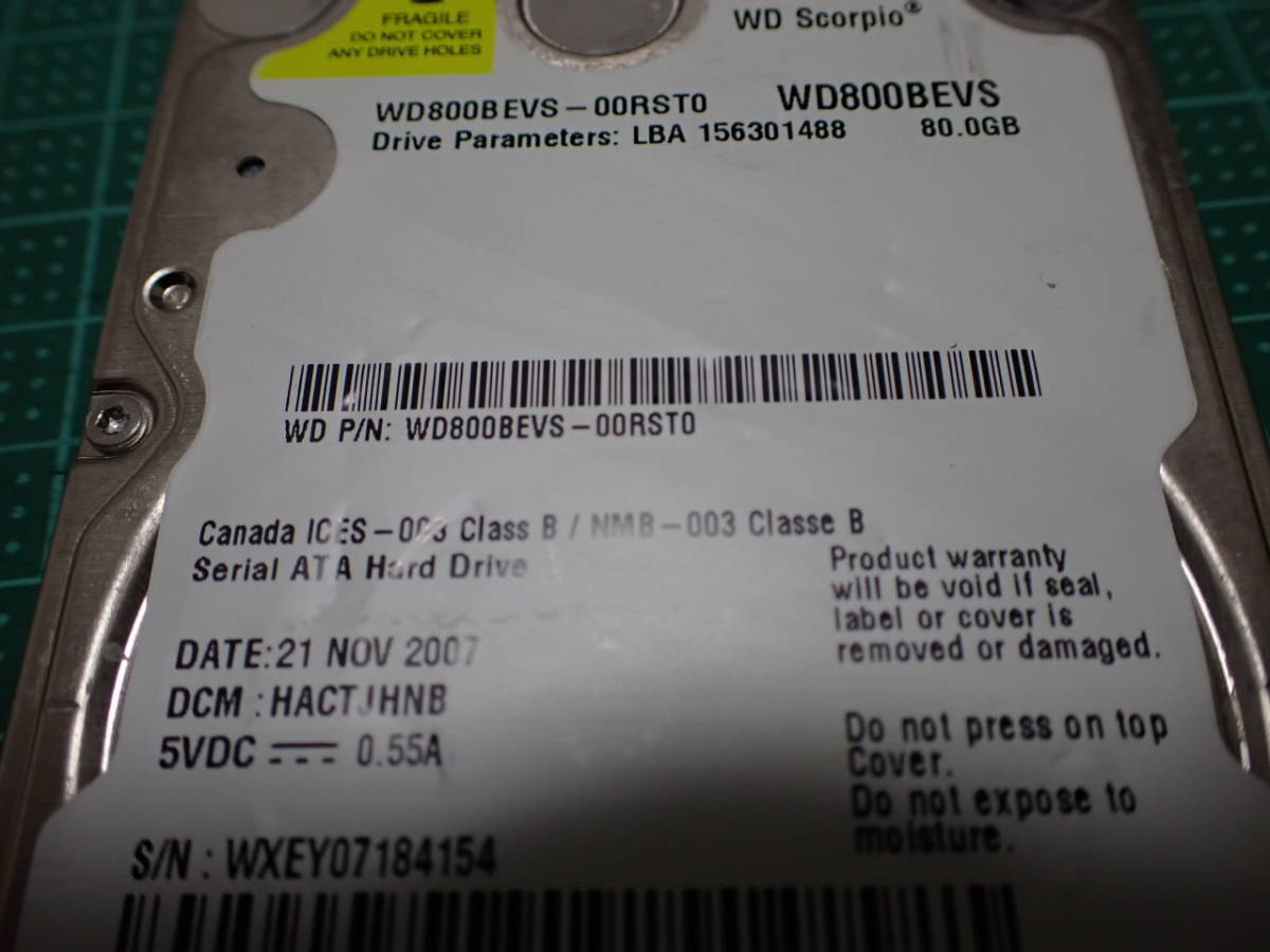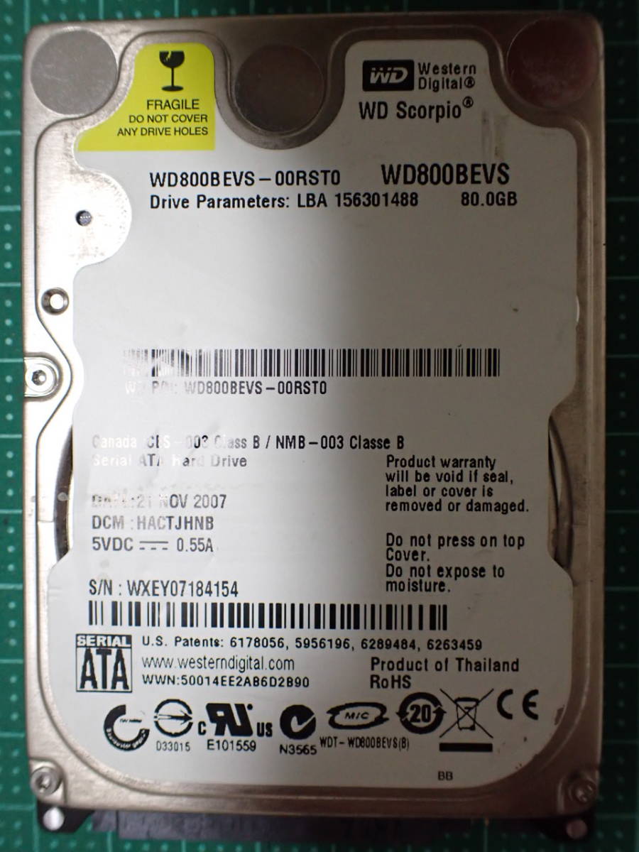 ◇ウエスタンデジタルの2.5インチHDD WD800B EVS-00RST0 80GB になります。