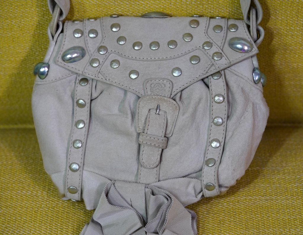 LOEWE ロエベ スタッズ アナグラム レザー ショルダーバッグ スペイン製 スエード 美品 即決