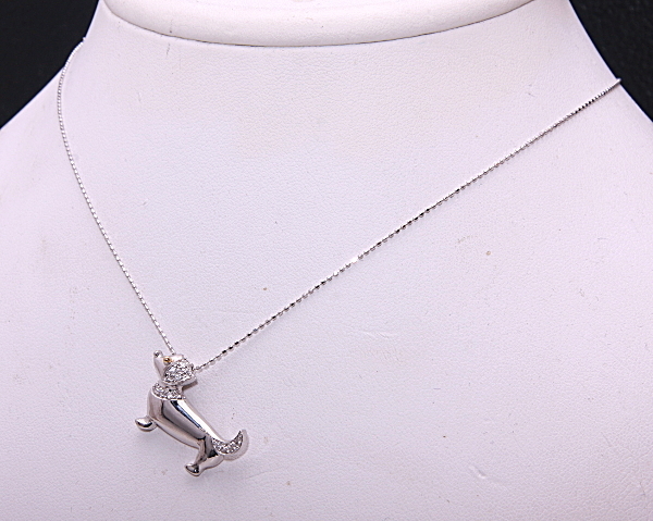 《質屋》k18WG★犬モチーフダイアペンダントネックレス★C-4975