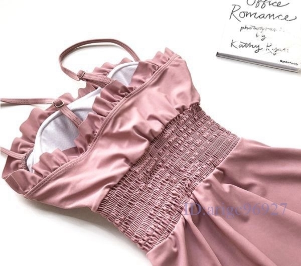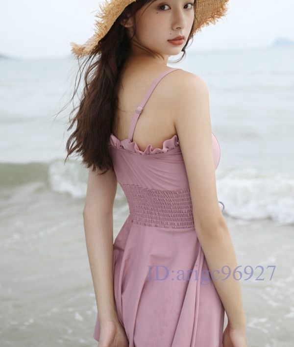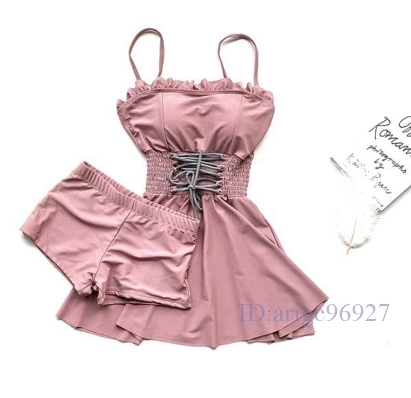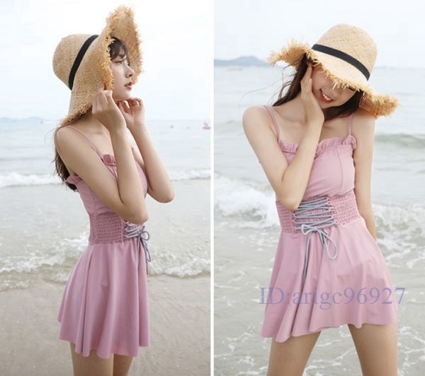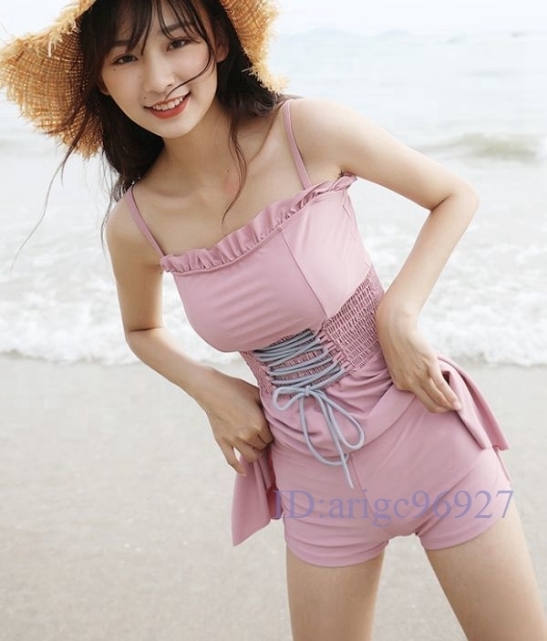 B106★レディース 水着 M.L.XLサイズ ピンク ボクサーパンツ ワンピース 細見え 体型カバー クアハウス リゾート 夏 プール 海 旅行