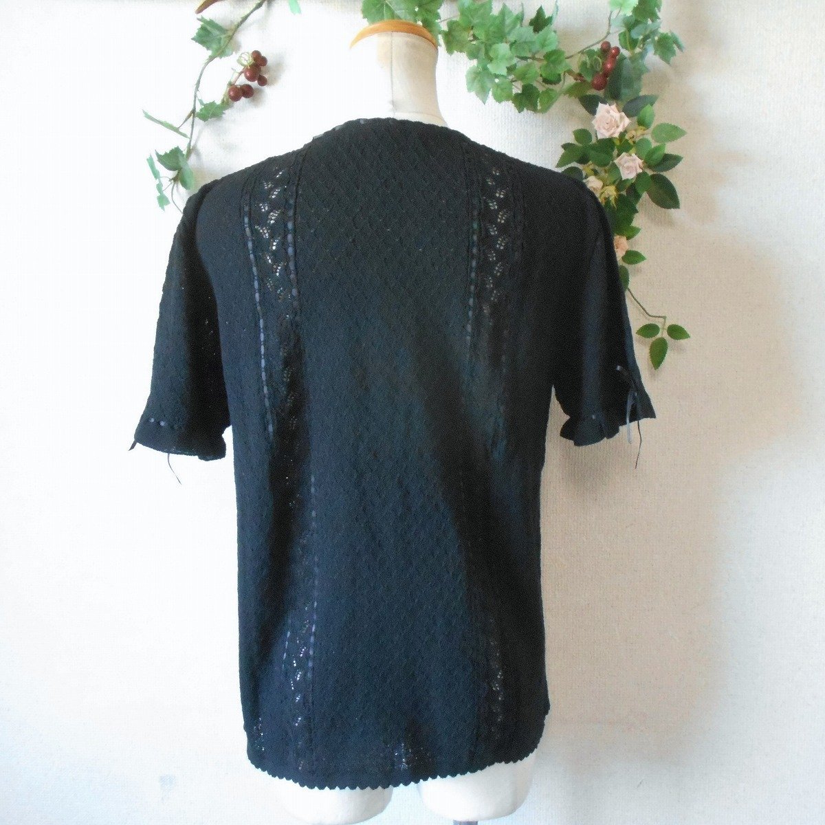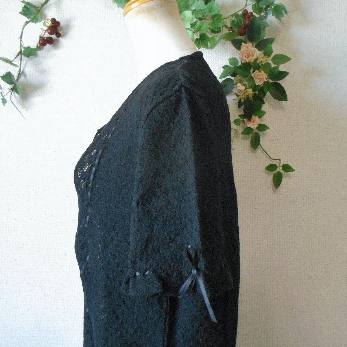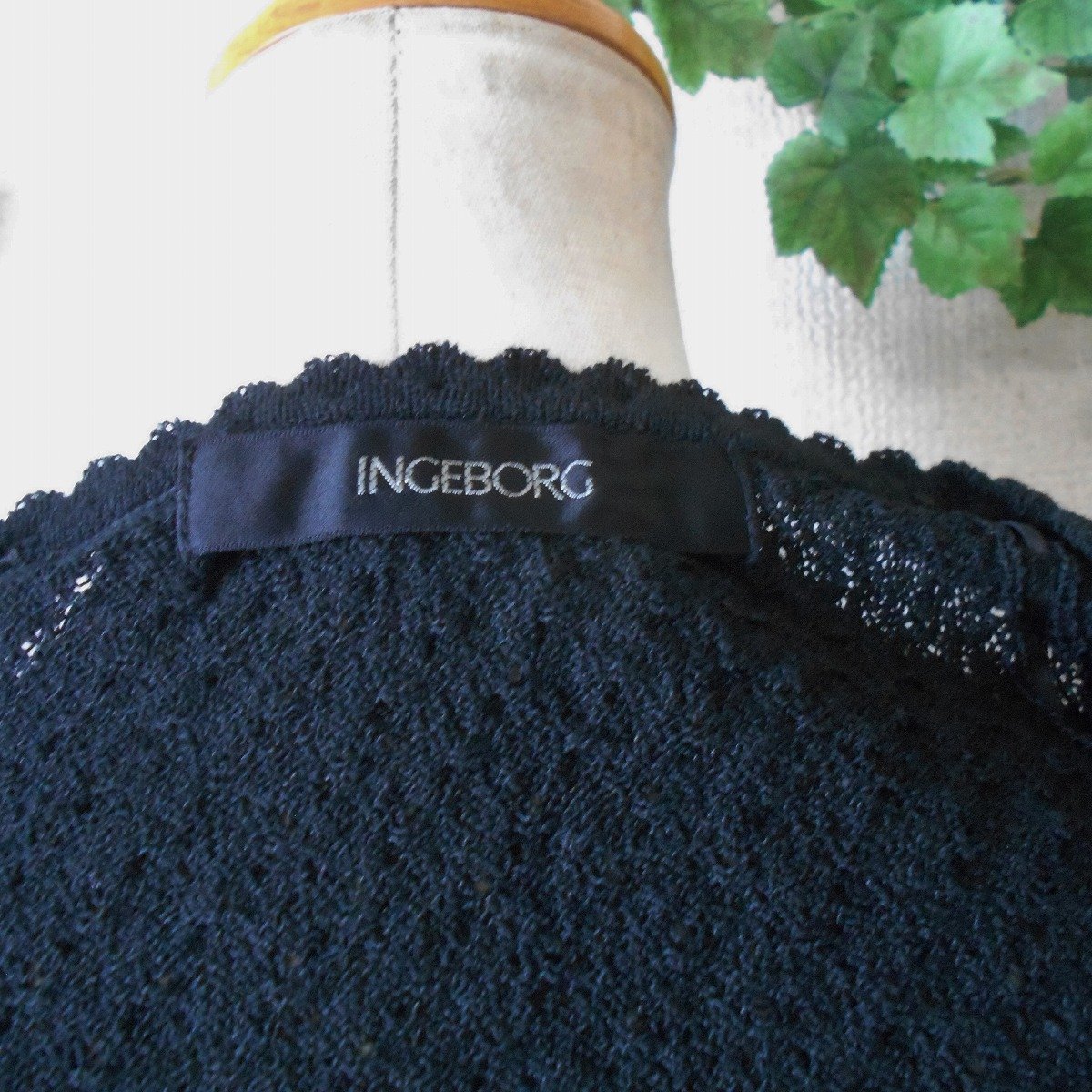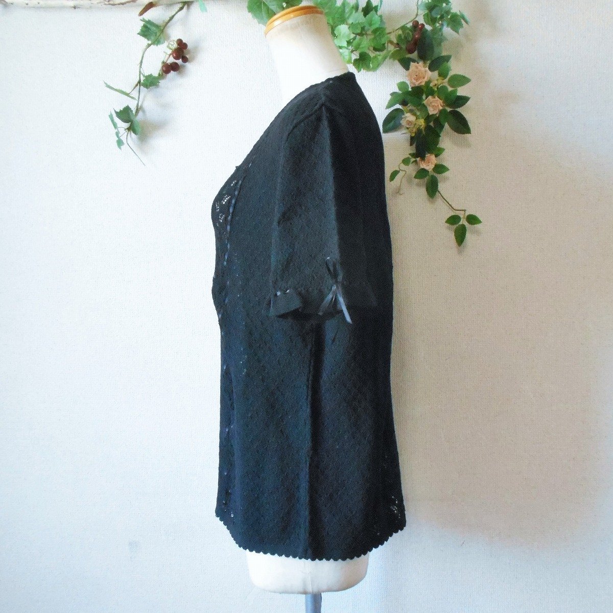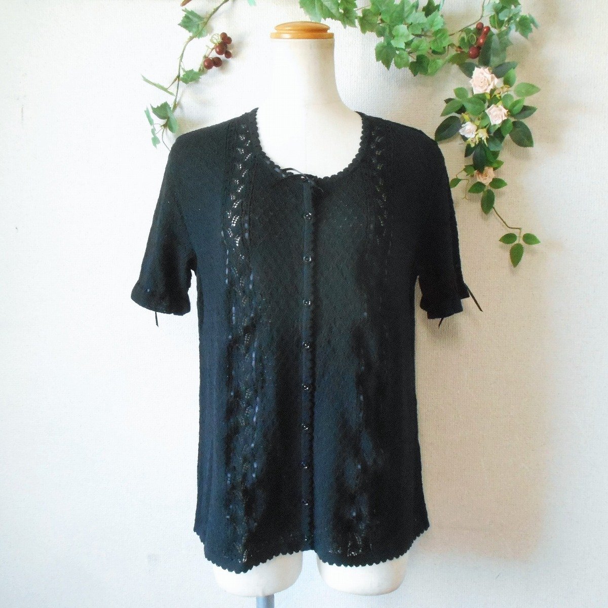 インゲボルグ INGEBORG 夏 はしごリボン 使用 薄手 ニット カーディガン 黒 日本製