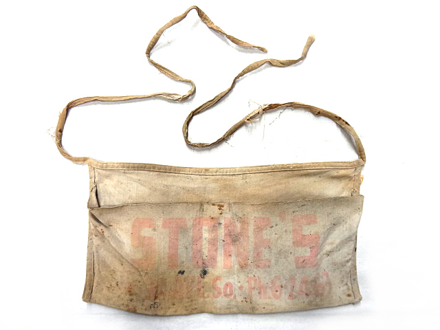 ビンテージ 50S 60S ワーク ポケット エプロン 腰巻 白 ホワイト 赤 文字 英字 プリント ボロ ダメージ 雰囲気 アクセサリー レア 希少 色