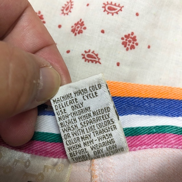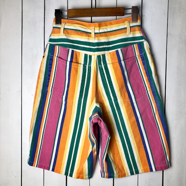 USA古着 80s マルチストライプ カラフルデニムハーフパンツ 5 オールド ヴィンテージ アメリカ古着 ショーツ S程度 ●109