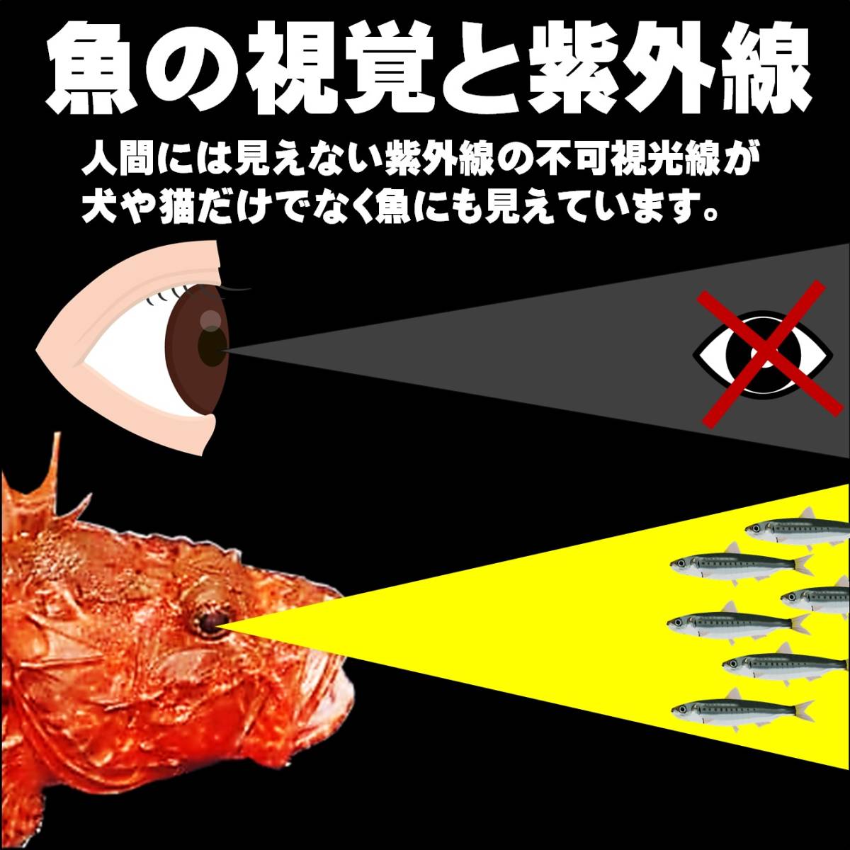 そんな紫外線に目玉・巻きそ・ツートンコンビフラッシャーが蛍光発光して強烈アピール。