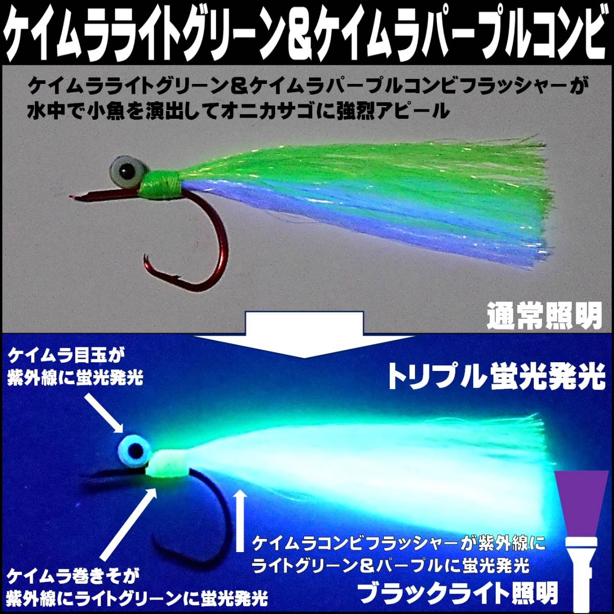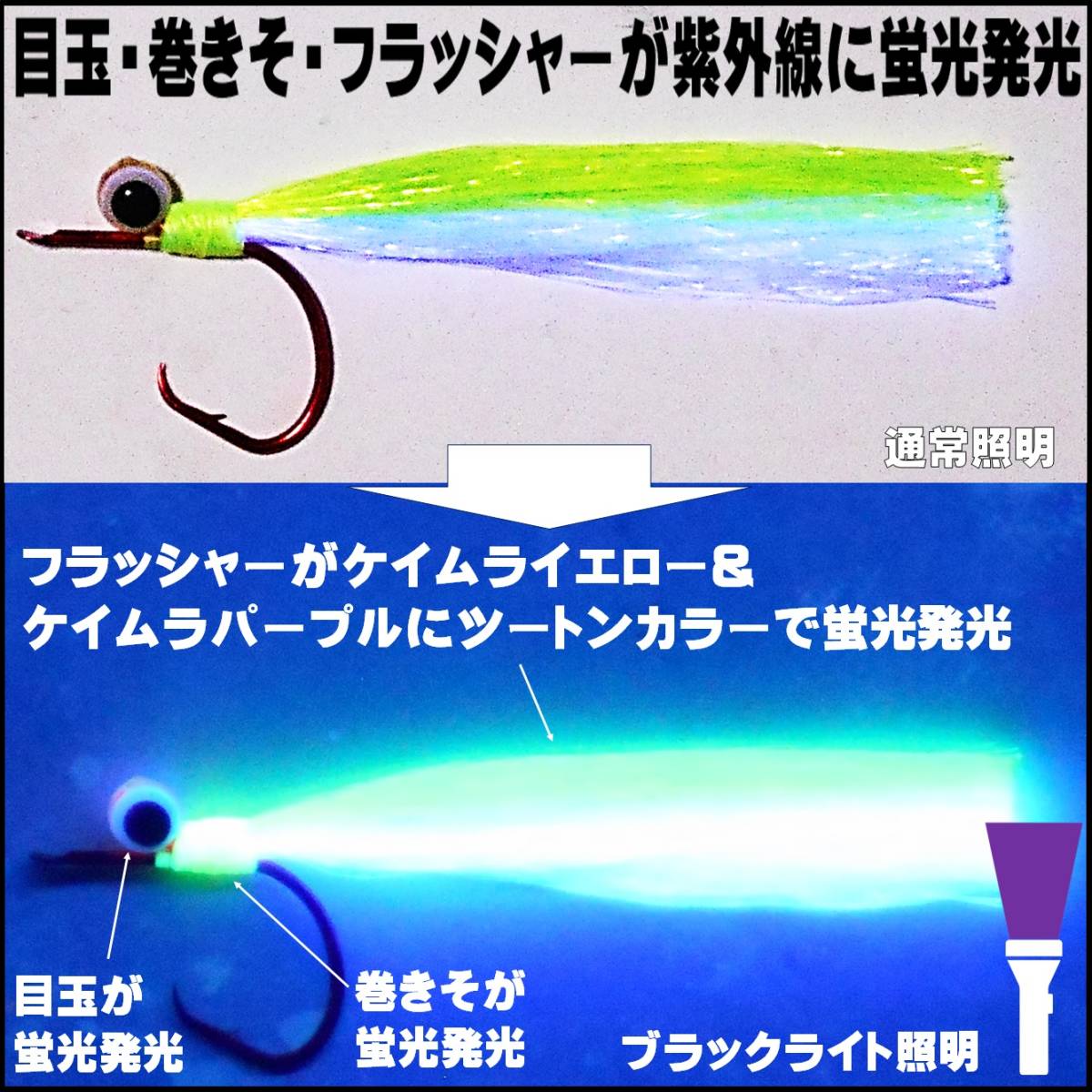 1. ケイムラライトグリーン&ケイムラパープルツートンコンビ フラッシャー 約7cm