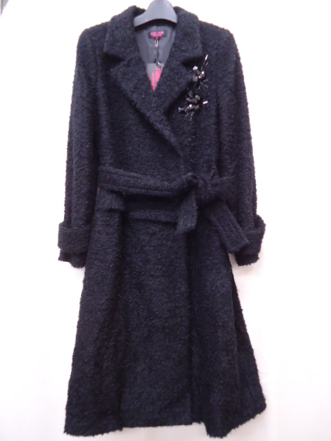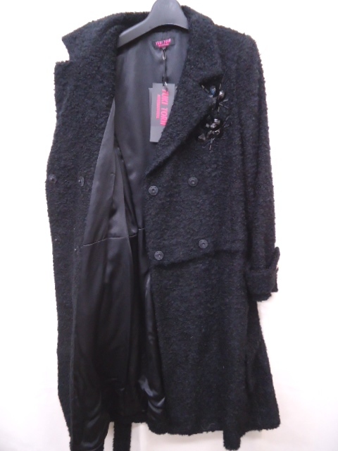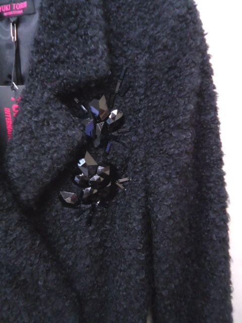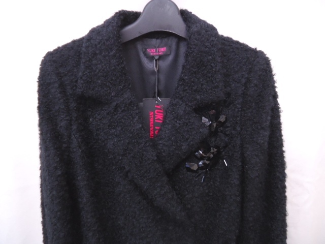 【KCM】jmc-turi-151★未使用品★【YUKI TORII/ユキトリイ】ウエスト切替 ベルト付 コート アクリル・モヘヤ他 ブラック サイズ 38