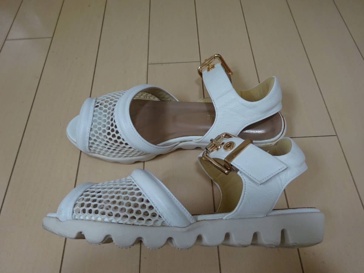 | ■ヒルズアベニュー HILLS AVENUE ヒルズアヴェニュー★ウェーブソールリップル 太めアングルストラップ 本革×メッシュ 可愛いサンダルになります。 ■お色は白になります。 サイズ表記は22.5です。少し大きめの作りで、大きめの22.5㎝~23㎝になります。。ウェッジソールの高さ約3㎝、フロントの高さ約1.5㎝です。ヒールのタイプ:ウェーブソールリップル、ワイズ 3E 素材: 本革×メッシュ、箱なし、日本製 ■太めのアングルストラップで、ピンクゴールドのベルト金具で、とても履きやすくて、可愛い1足です♪ ■目立つようなシミ・汚れなどはなく、使用感・かかとの減りも少なく、全体的とても綺麗な状態です。美品ですが、USEDとして上記の状態をご理解いただける方のご入札をお願いします。 | |||