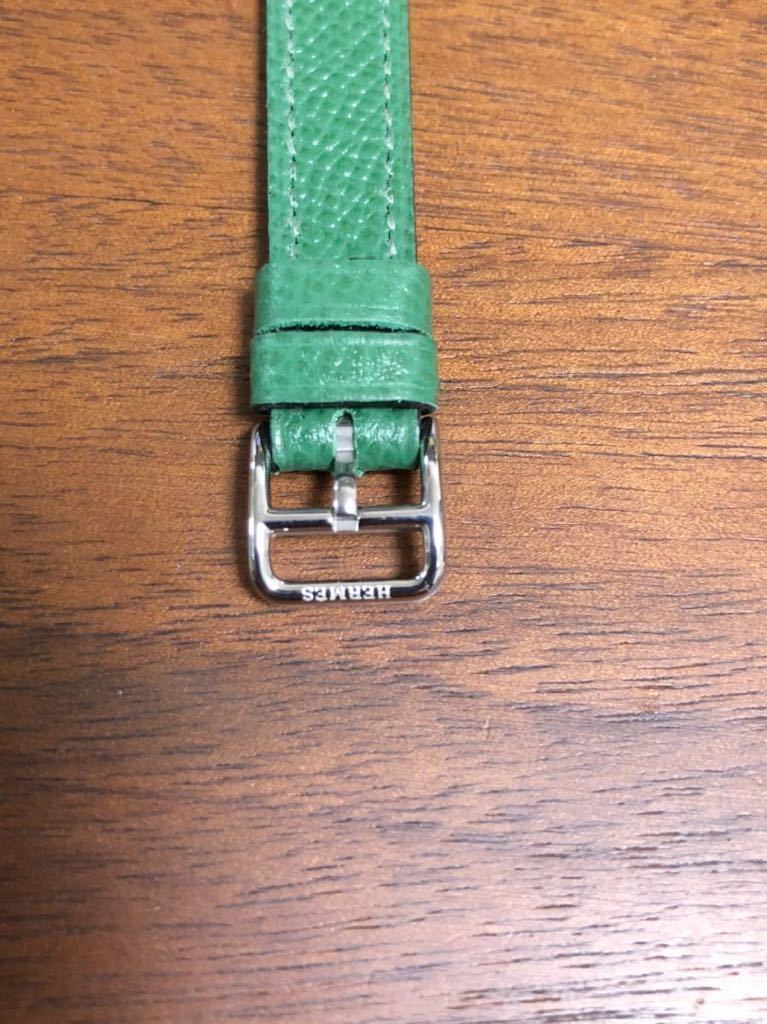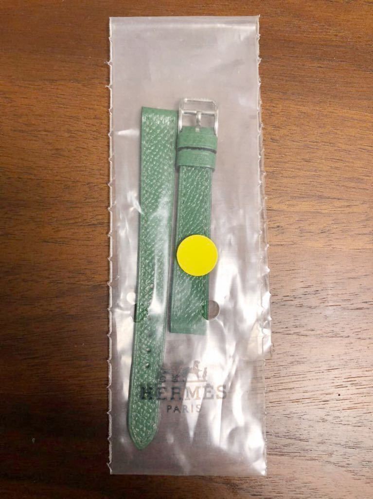 新品 HERMES エルメス カーフレザー型押し 腕時計ベルト レディース グリーン