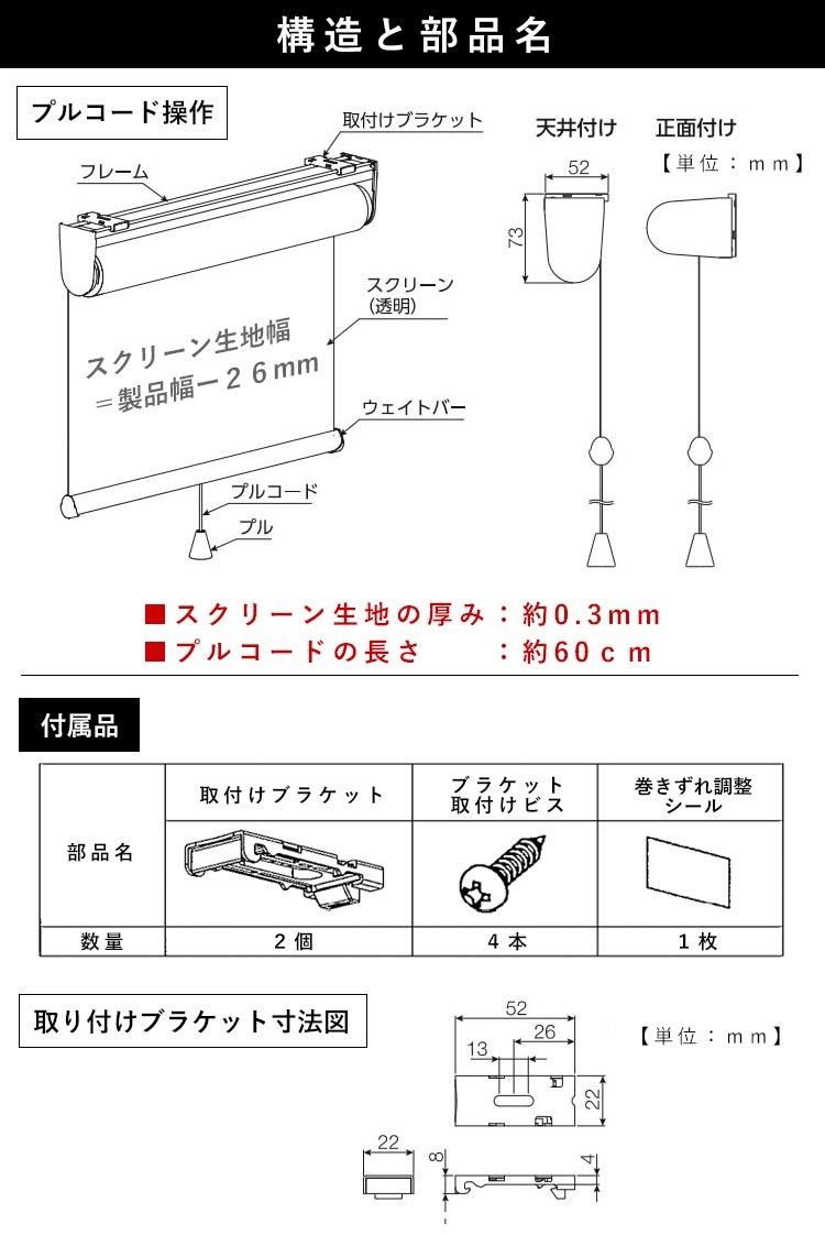 注意事項 | モニターの具合により、掲載写真と実際の商品の色が異なって見える場合がございます。 ロールスクリーンを上下して使用する商品ですがビニールなので【静電気】が発生し、 消毒用のアルコールなどをふきかけて水拭きをするとスクリーンが降りにくくなります。 スクリ ーン生地(レザー)は特性上カールが発生します。 |