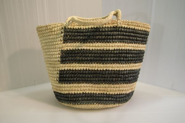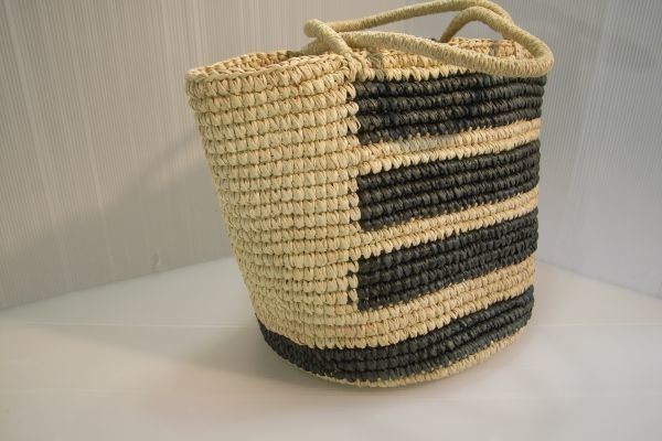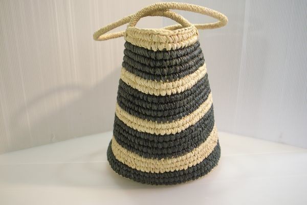 ●センシ スタジオ バケツ かご 装飾 バッグ ボーダー柄 カゴバッグ エコバッグ 鞄 トートバッグ バスケット ラフィア SENSI STUDIO