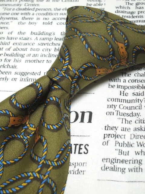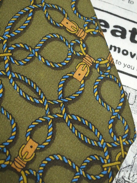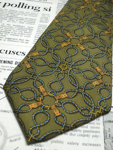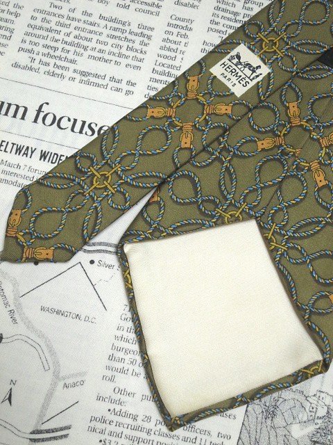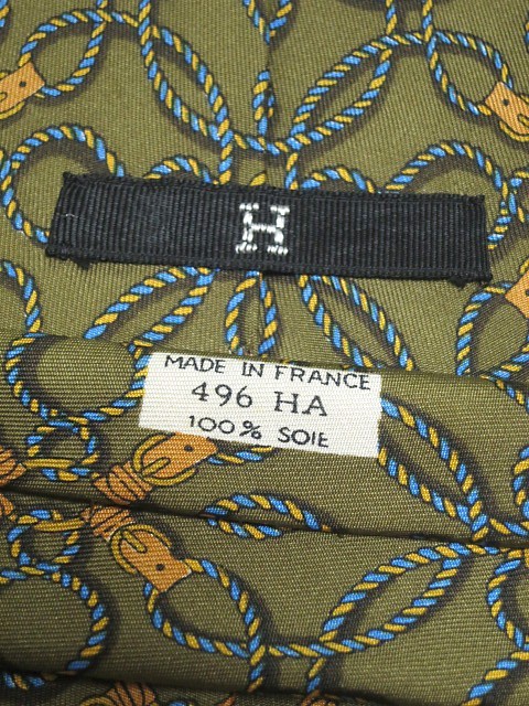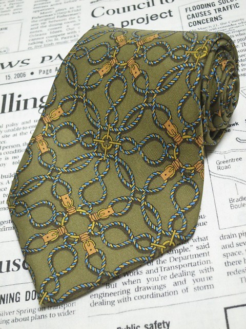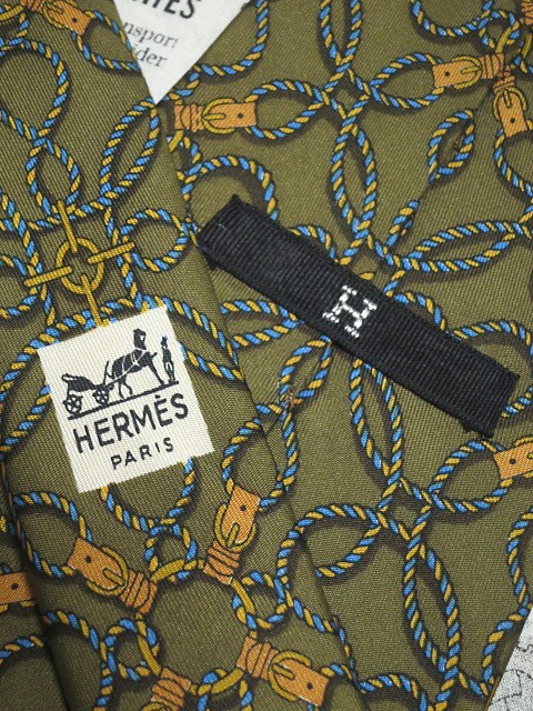 ベルト柄でオシャレ! エルメス HERMES 良品 微光沢 ネクタイ フランス製 シルク100% ベルト柄 カーキ系ベース G-004921 | |