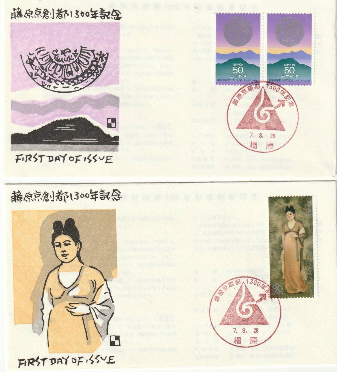 FDC 1995年  藤原京創都1300年記念 50円80円  銀座わたなべ