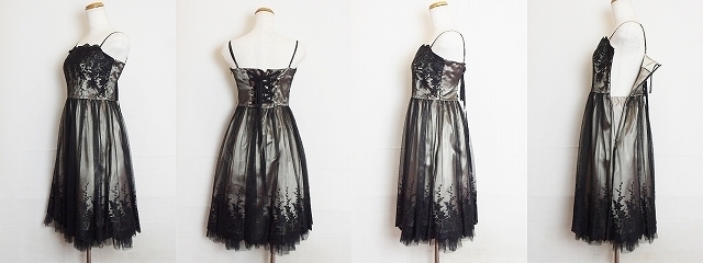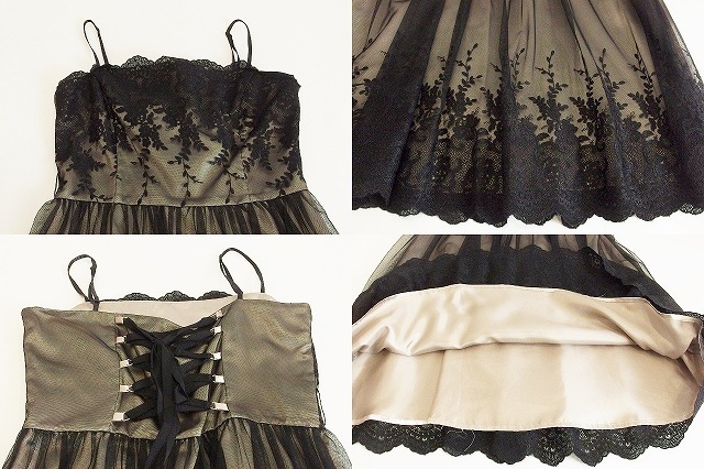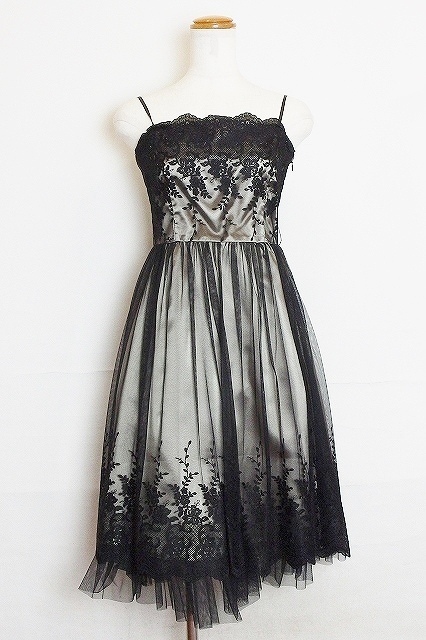 AIMER 刺繍 チュール パーティドレス パニエ付き 9 ブラック/ベージュ