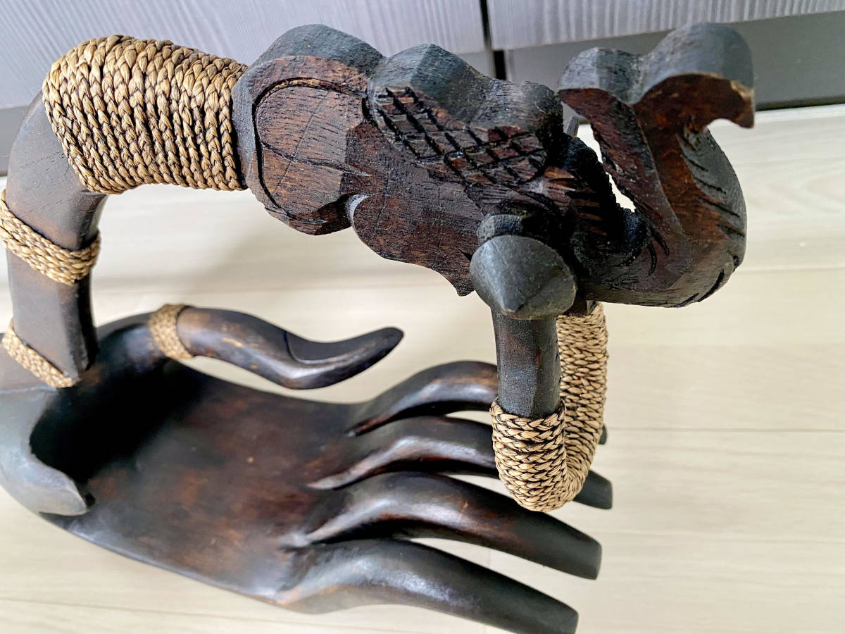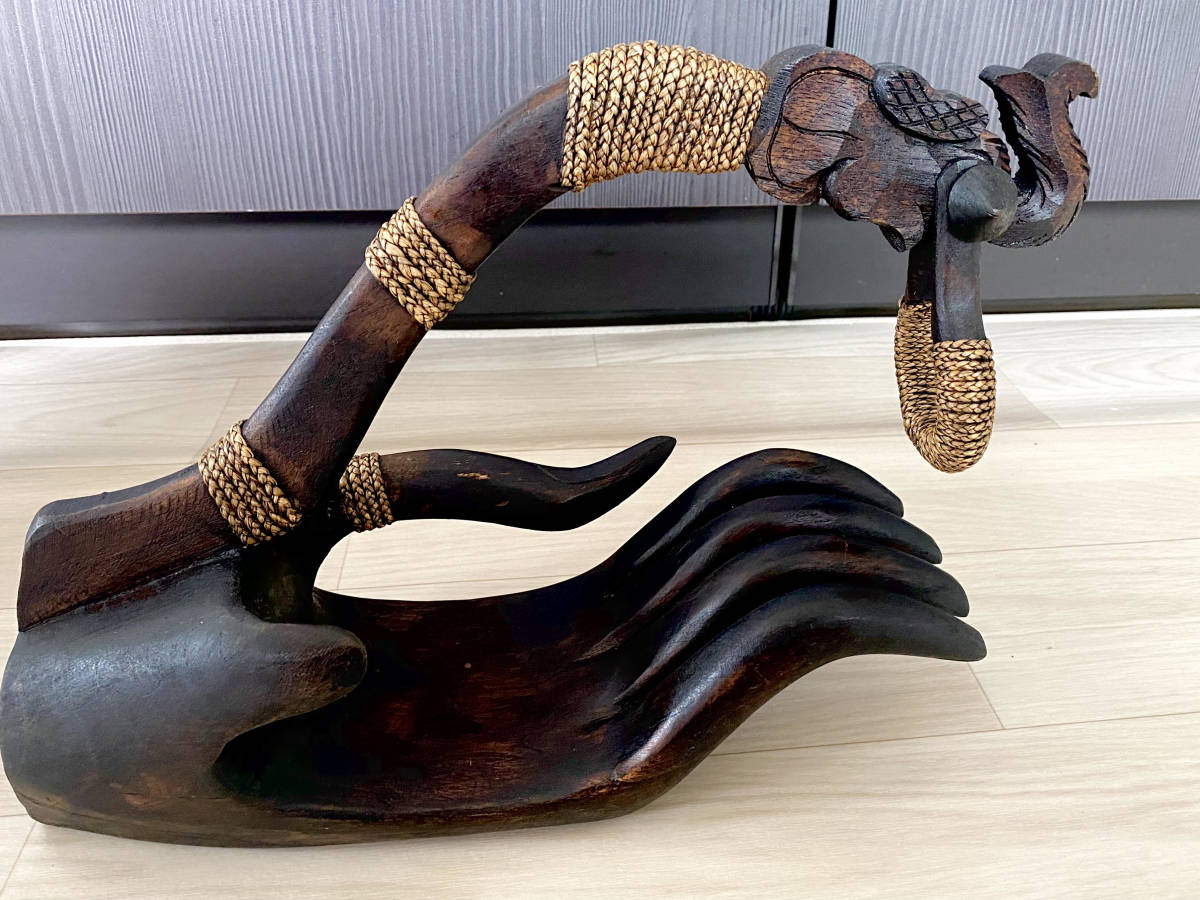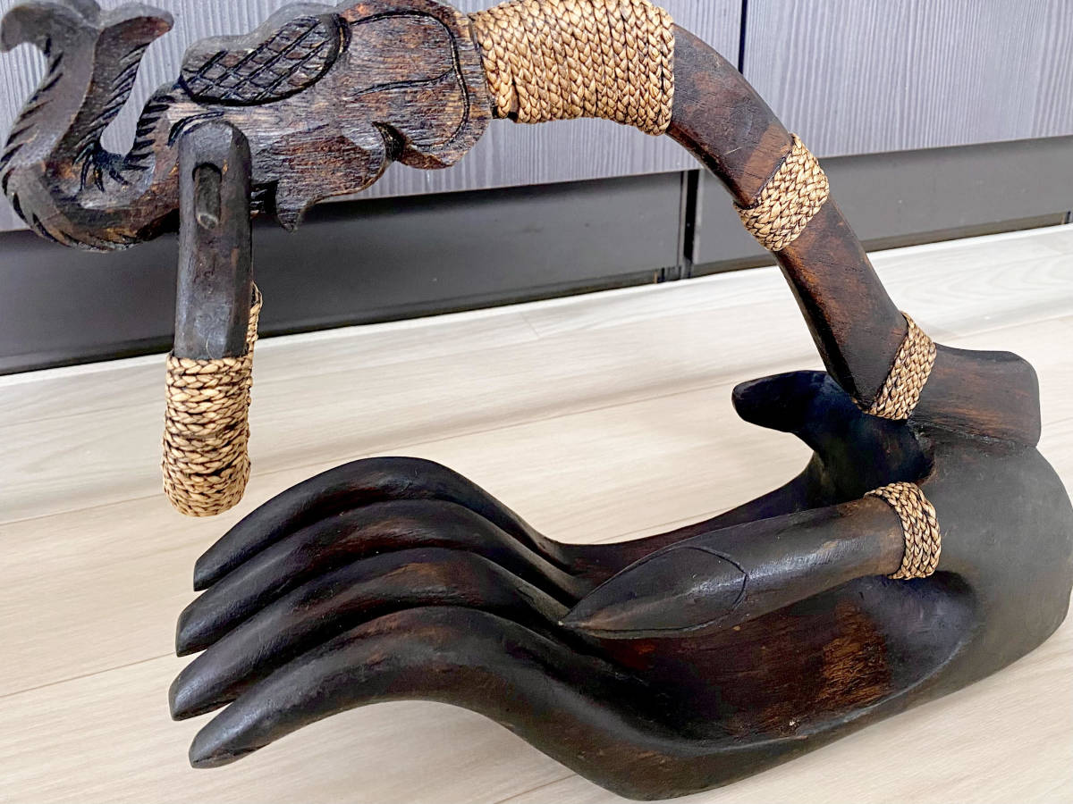 マンゴーウッドの手の形とゾウをモチーフにした大変高級なワインラックです。
