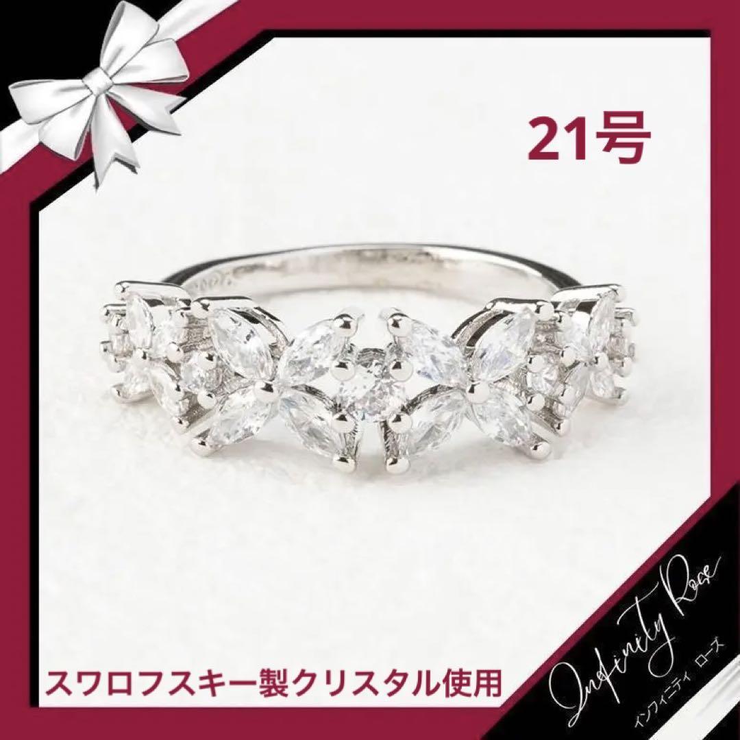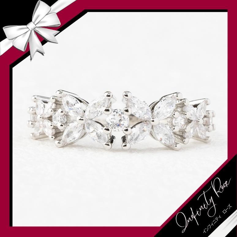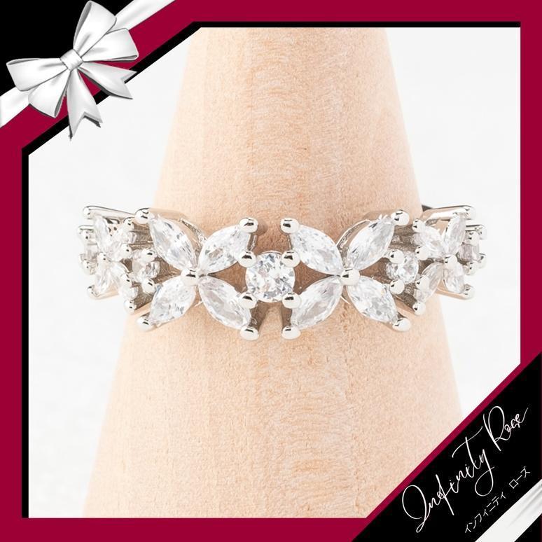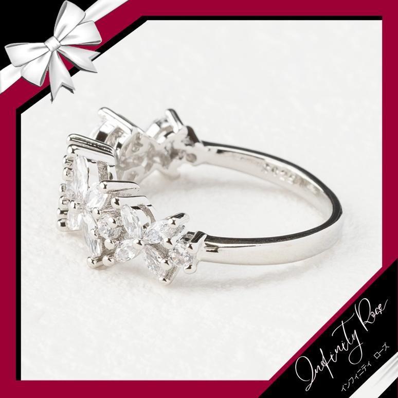(R037S)21号 シルバー清楚な繋がる4つ小花リング 高価爪留め仕様指輪 スワロフスキー製クリスタル使用